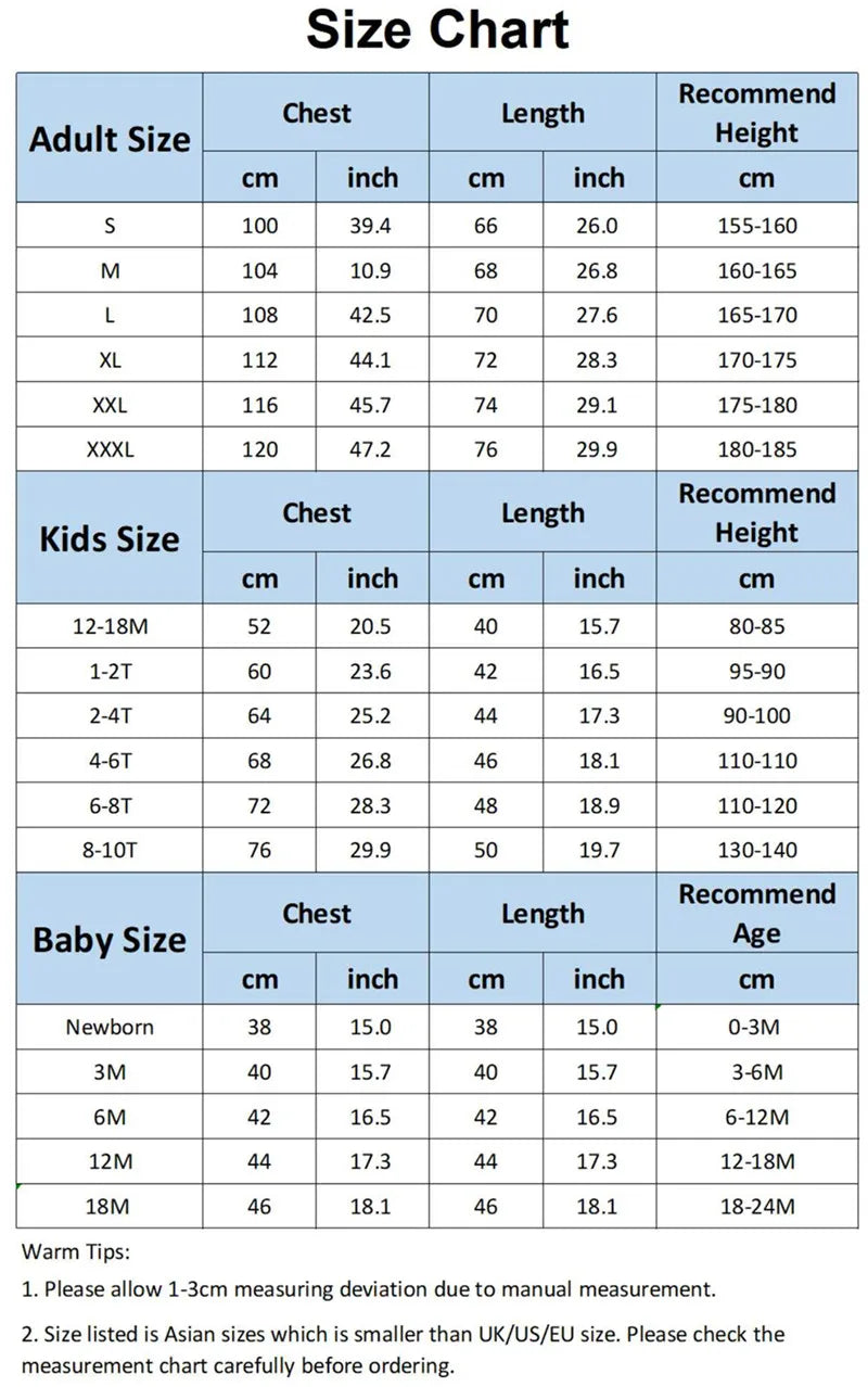 - Matching Set: Includes t-shirts for adults and kids, and bodysuits for babies, allowing the entire family to match in style.