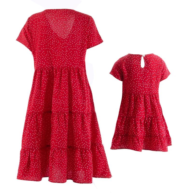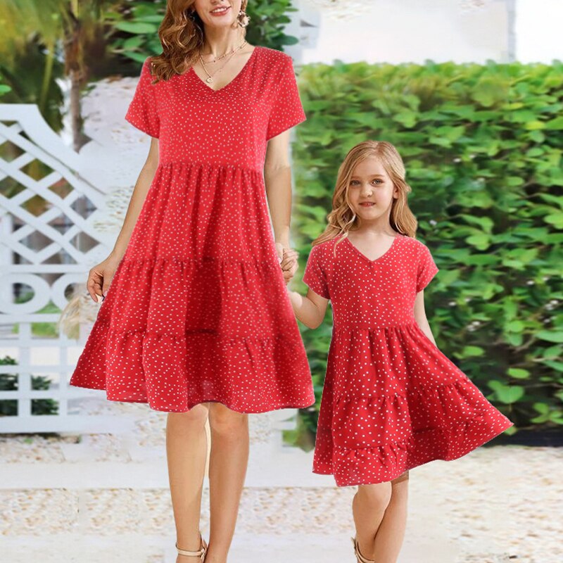 Short Sleeve Dress For Mother Daughter Matching Clothes Casual V Neck