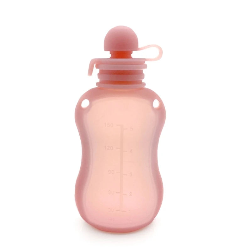 This reusable baby food pouch is made from BPA-free silicone, ensuring safety and durability. Perfect for storing milk, juice, or homemade baby food, the pouch is soft, squeezable, and designed with a leak-proof lid.