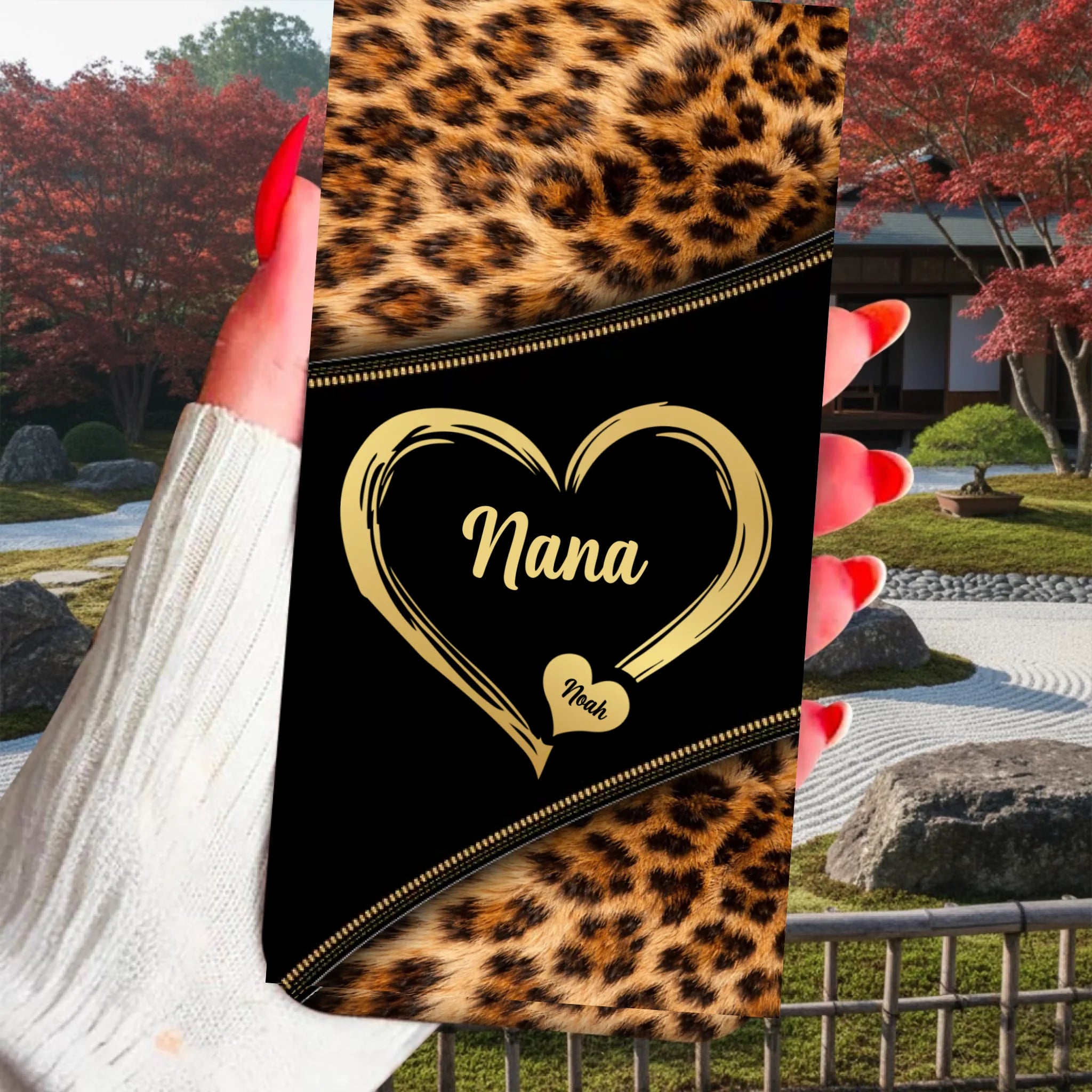 Clear Silicone Phone Case – Grandma & Grandkids Leopard Heart Design | Personalized Grandma Name & Children Names | Custom Family Keepsake Gift | One-Side Printed Clear Case | Meaningful Gift for Grandma