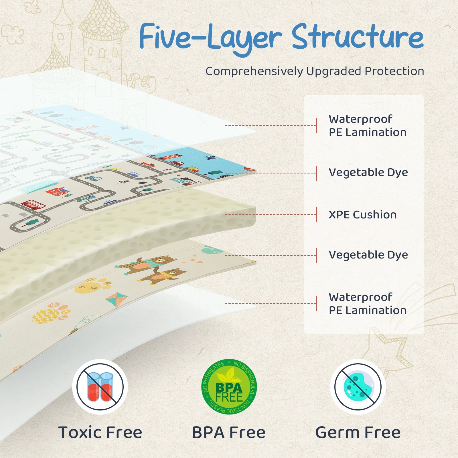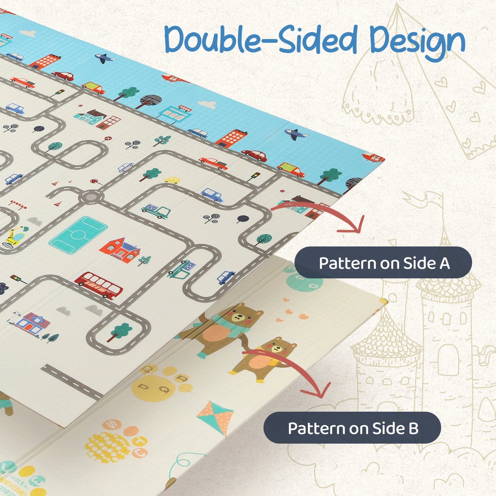 Stylish Double-Sided Design: Offers two visually stimulating patterns (e.g., Road/Town on Side A and Bear/Educational on Side B), introducing babies to different scenes and shapes for enhanced perceptual abilities.