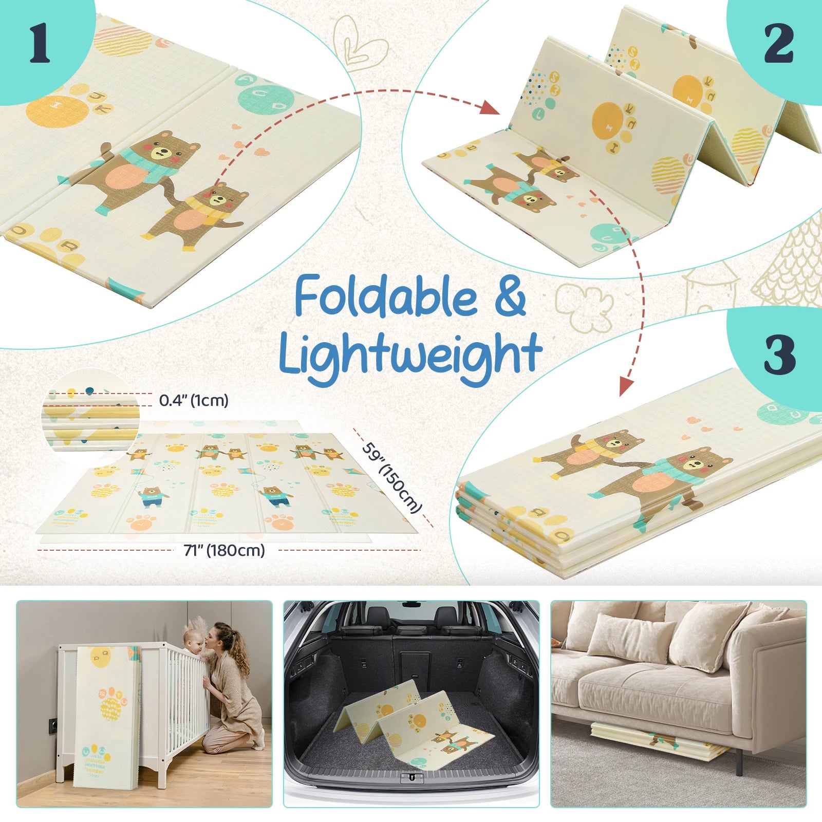 Reversible Foldable Baby Play Mat (180x150cm), Non-Toxic XPE Foam Padded Crawl Mat with Anti-Slip Surface for Tummy Time and Toddlers (1cm Thick)