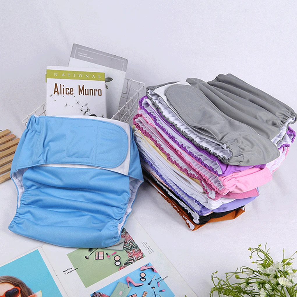 Adult Washable Cloth Diaper for Elderly and Disabled, Reusable Waterproof Incontinence Nappy with Adjustable Hook and Loop Closure (Multiple Colors)