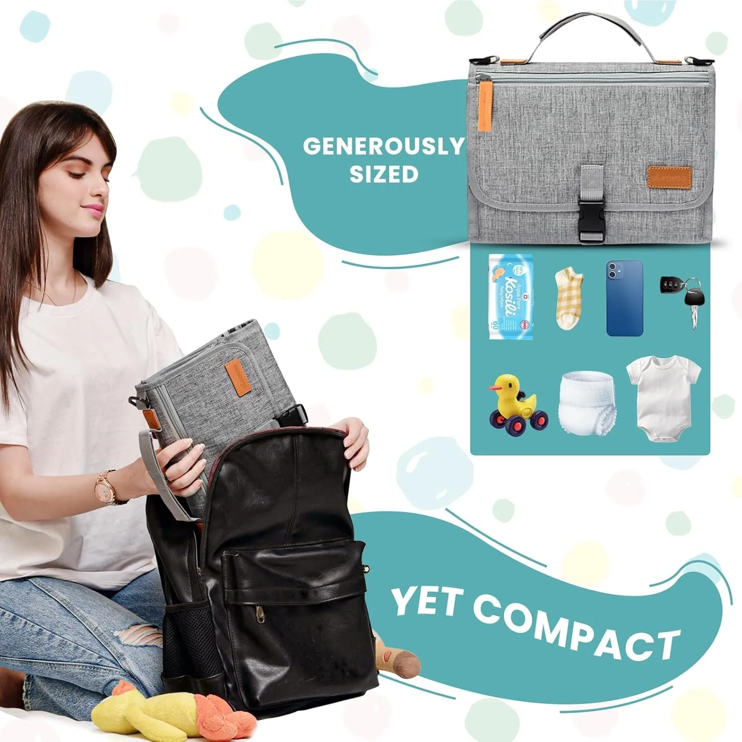 Simplify every diaper change outside the home! Click 'Add to Cart' now to secure this multifunctional, waterproof portable changing pad and travel bag!