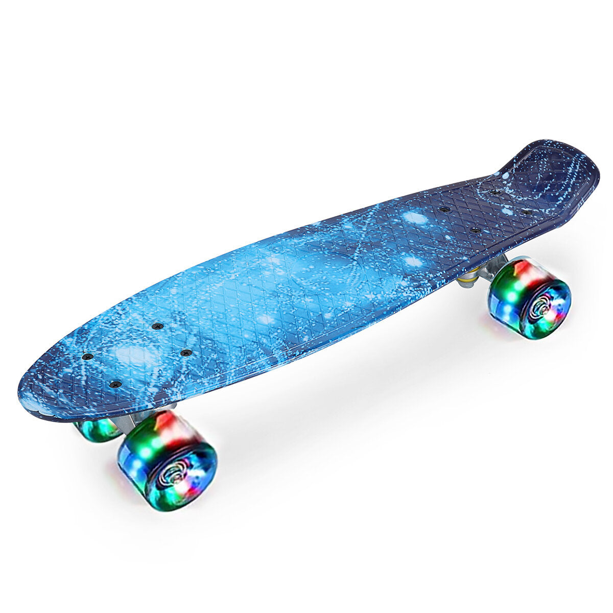 22 Inch Kids Skateboard Portable Mini Cruiser Retro Skate Board for Kids Boys Girls Youths Beginners Load 90kg with Flashing Wheels