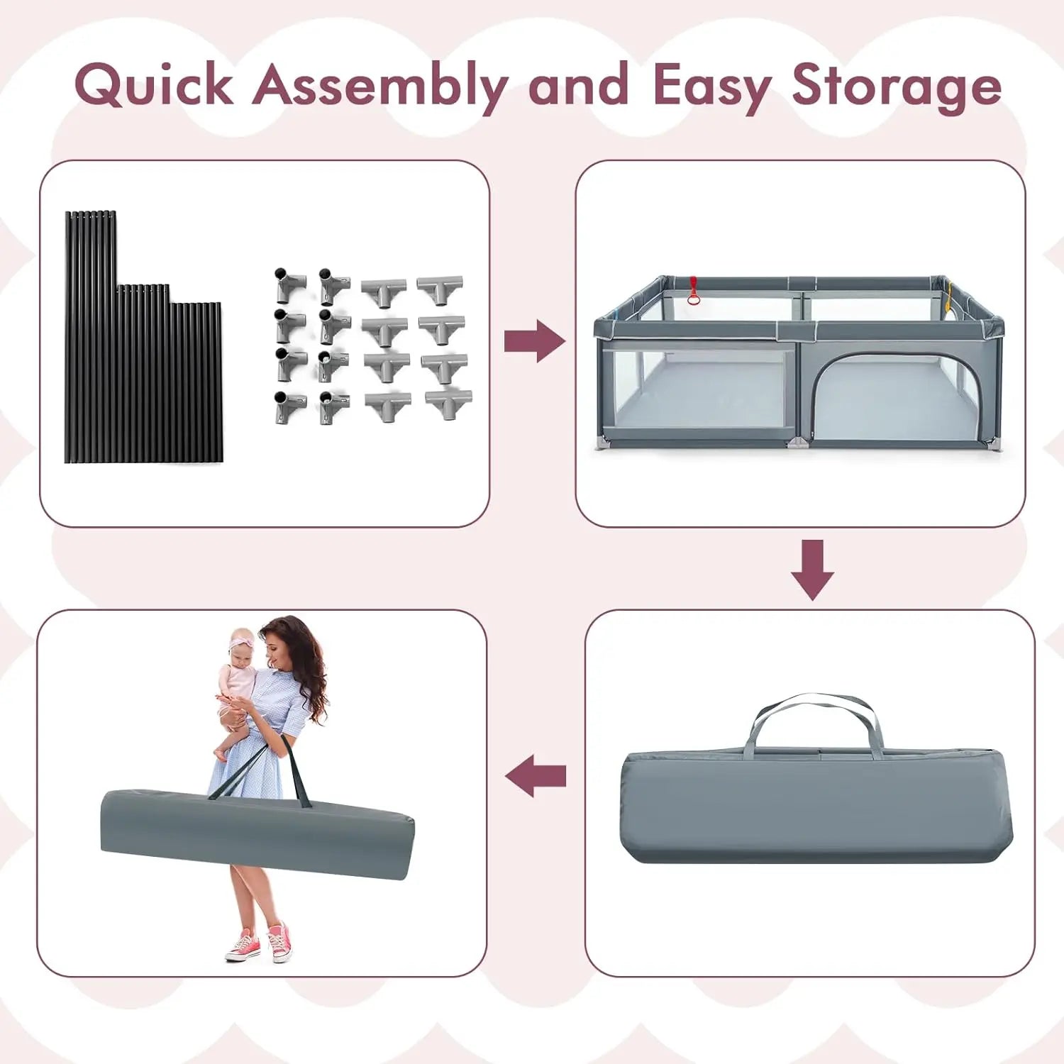Simply wipe clean with a damp cloth—perfect for busy parents. The lightweight design makes it easy to disassemble and store when not in use. -