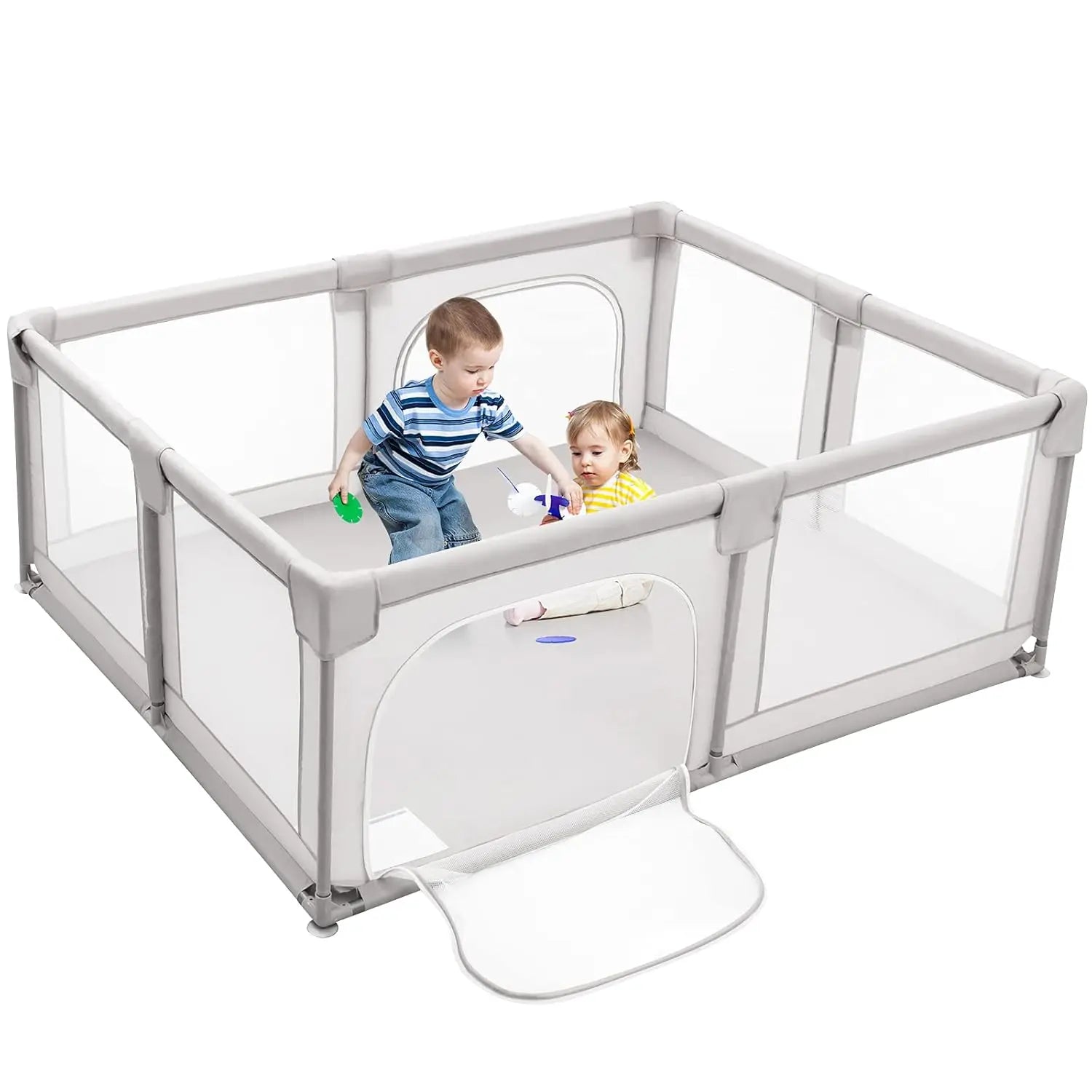Mesh side panels allow for full visibility and interaction while ensuring proper ventilation. The external zipper door provides easy access for babies and lets parents help them in or out effortlessly. -