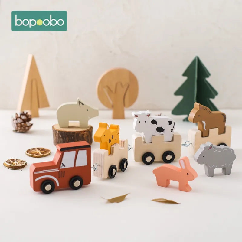 1 Set Baby Animal Train Toys | Wooden Animal Stacking Toy Blocks | Montessori Hands-On Queuing & Balance Ability Educational Gift for Children