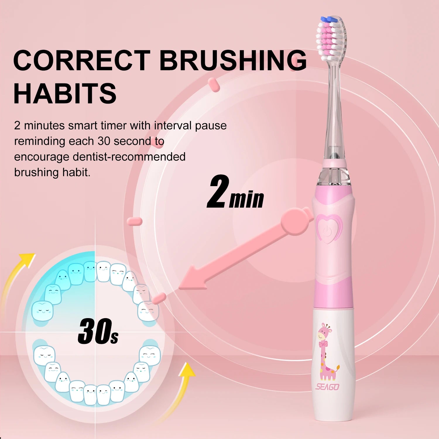 Built-in Timer for Proper Brushing: The toothbrush comes with a built-in timer that helps children brush their teeth for the recommended duration by dentists. This feature ensures that your child achieves optimal cleaning results every time.