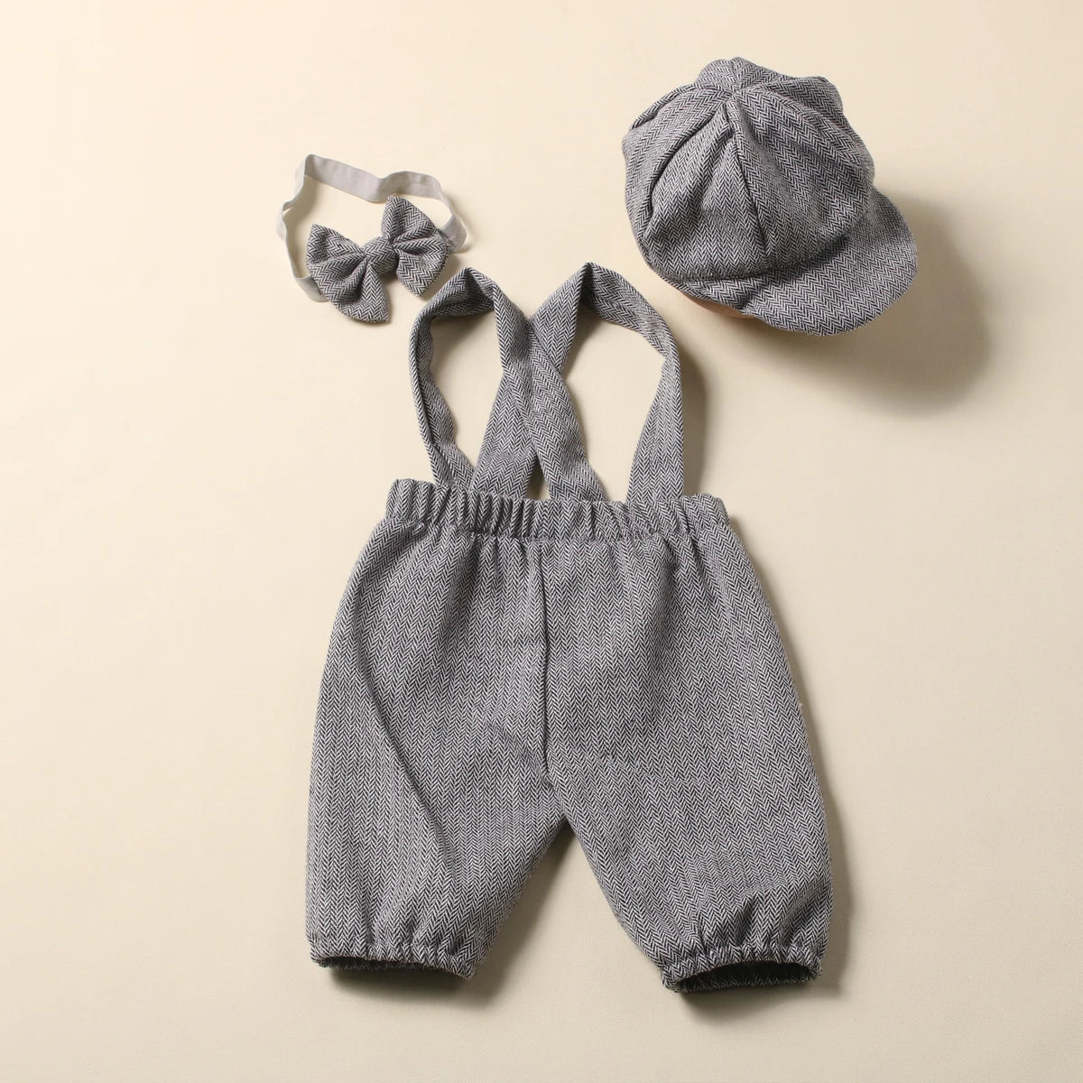 Classic Style: Your little one will look dapper and sophisticated in our newborn gentleman suit, complete with a stylish hat, adorable bow tie, and charming suspender pants.