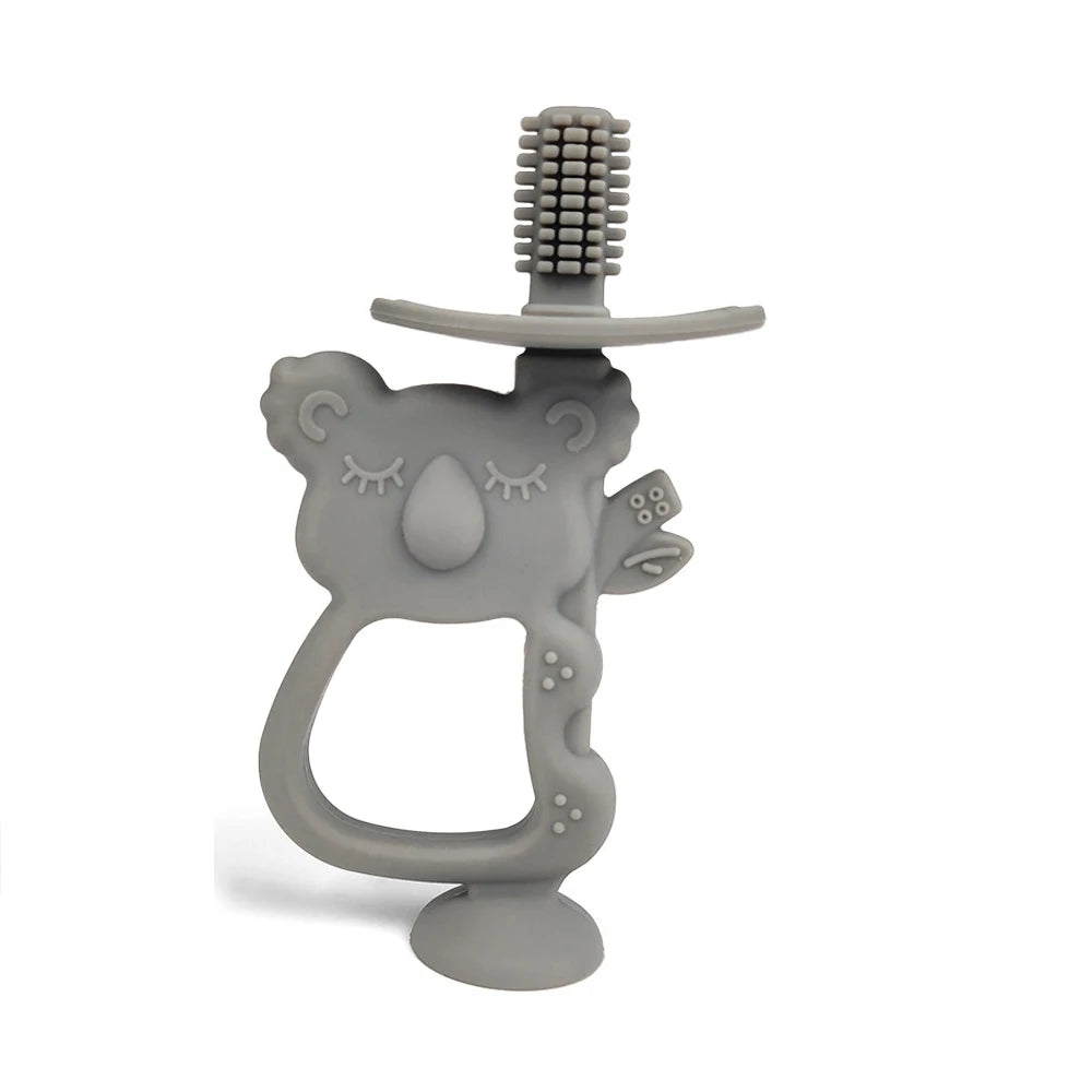 Crafted from safe and durable silicone, our training toothbrush doubles as a delightful teether and chew toy. The charming Koala design adds a playful touch to your child's oral care routine, making it an engaging experience they'll look forward to.