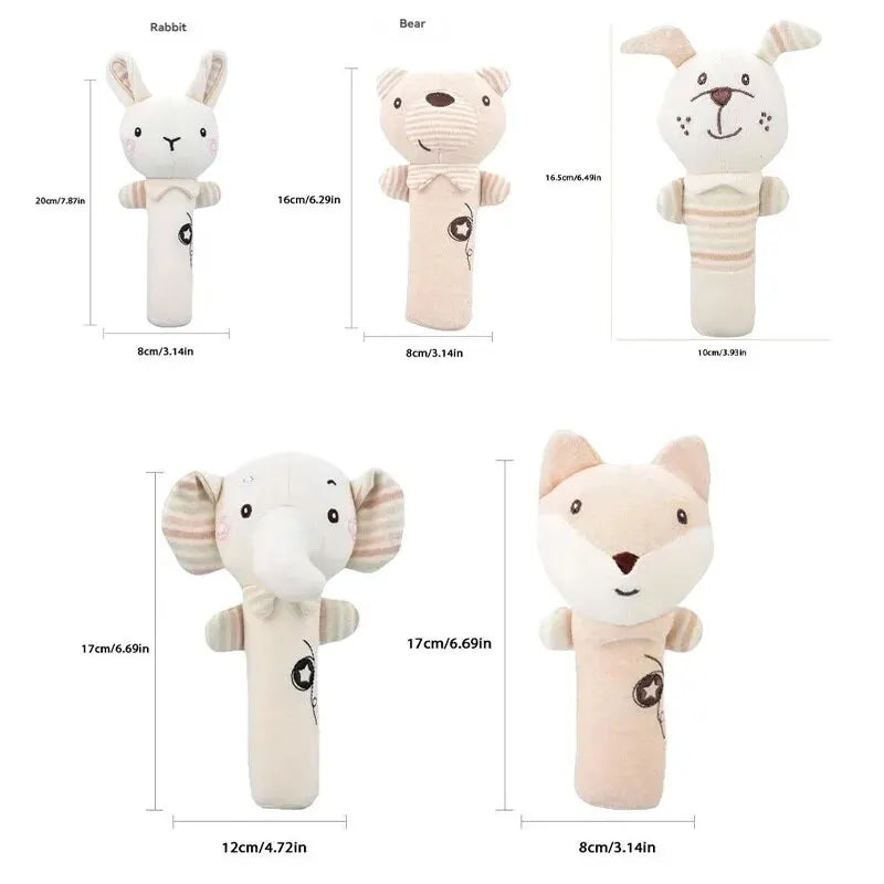 Available in 5 charming styles – Little Bear, Rabbit, Fox, Elephant, and Pup – these plush rattles quickly become a baby's favorite friend. Each design is cute, friendly, and visually engaging for your little one.