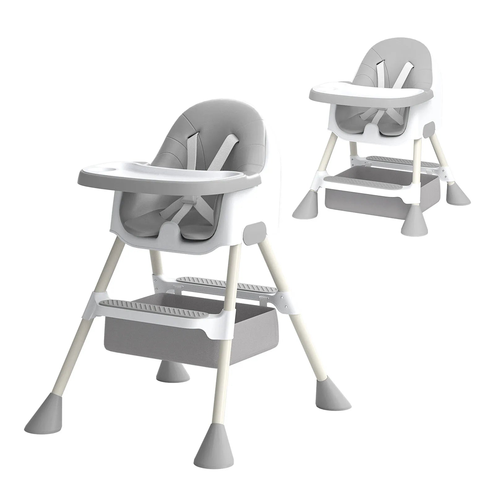 Safety Restraint System: Equipped with a secure 5-point safety harness (visible in images) to keep your baby safe and stable during mealtimes.