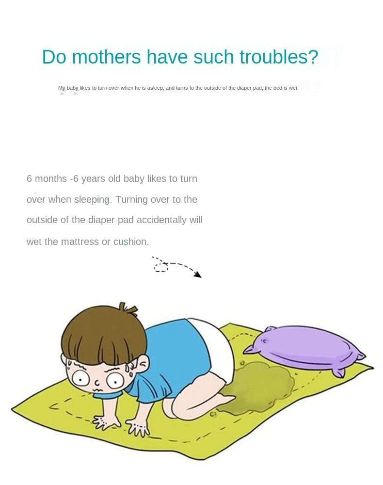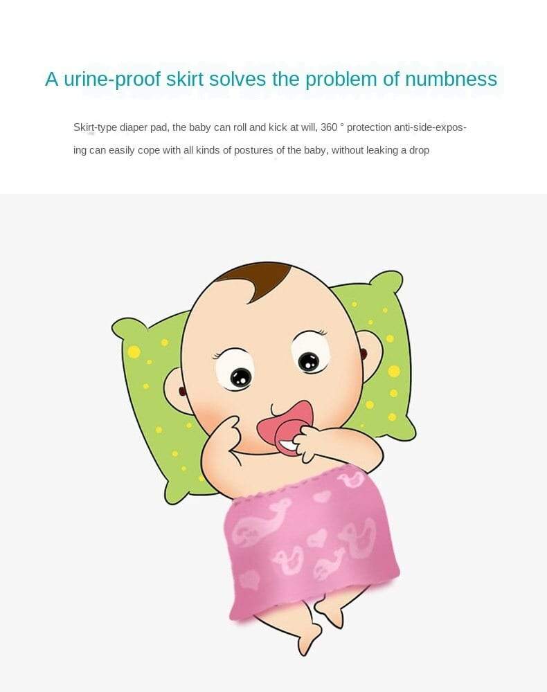 - Material: Outer layer-cotton; Middle layer-100% TPU Waterproof fabric; Inner layer- 95% cotton, 5% polyurethane(Nighttime Anti-Bedwetting Training Skirt which does not interfere with baby movements.