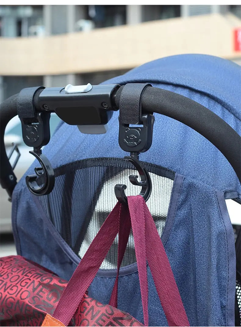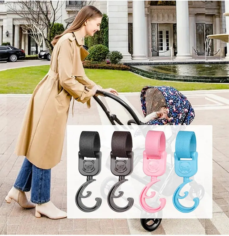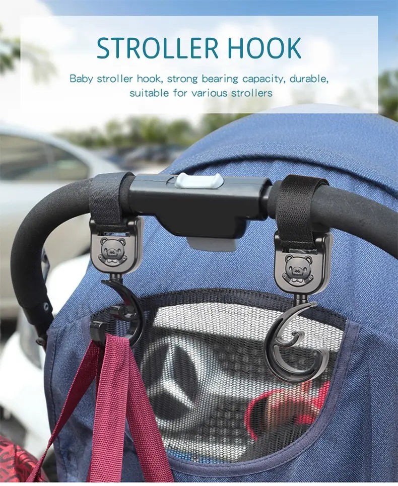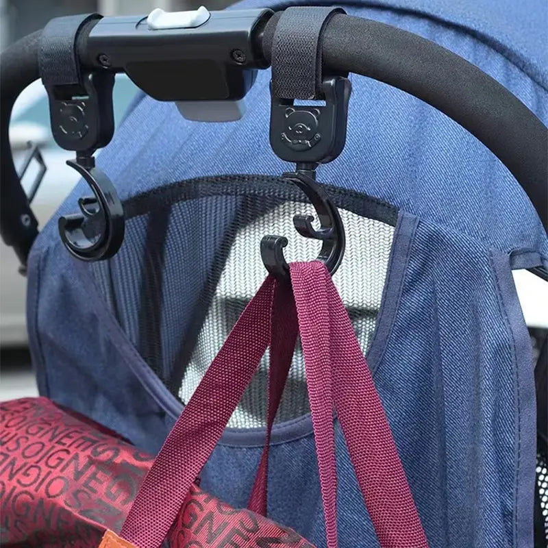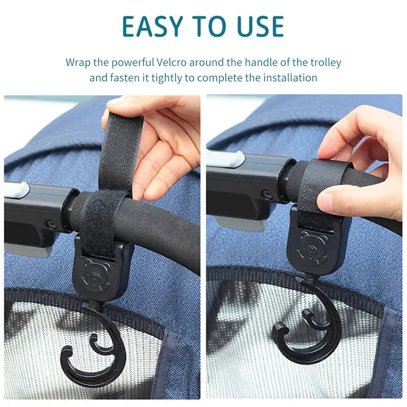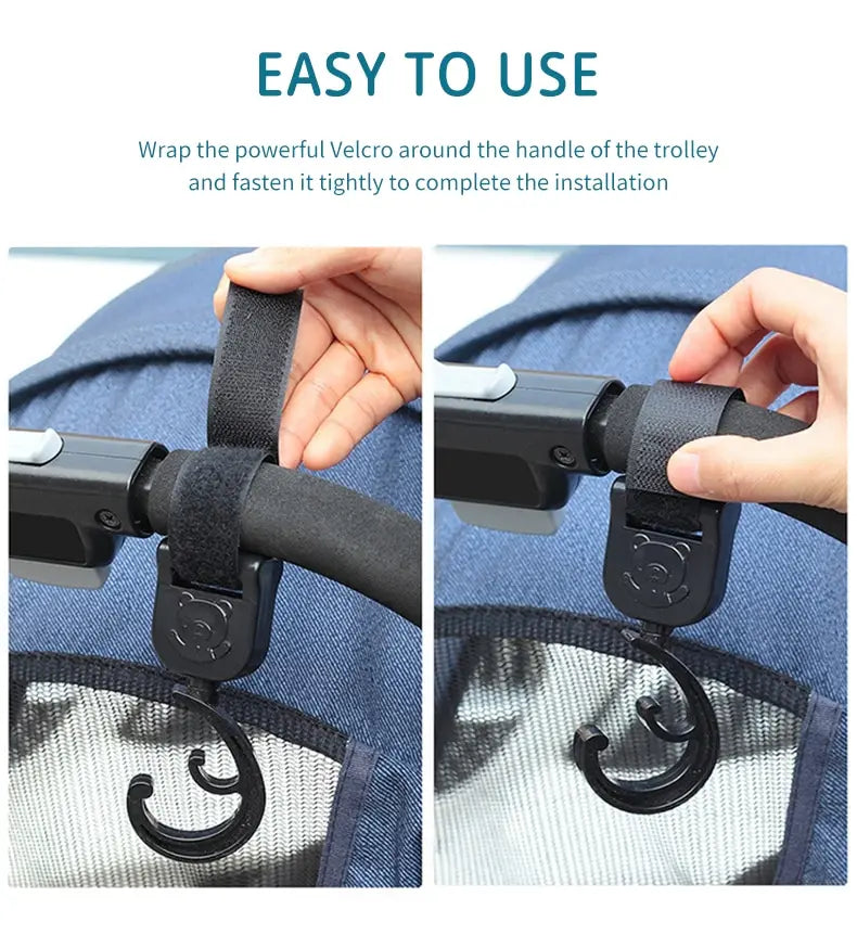 These accessories are perfect for accommodating multiple bags with wide handles on any stroller. The easy-to-attach hook and loop strap stays securely in place, preventing sliding and ensuring stability. The 360-degree rotation feature allows for flexible adjustment of the hook's direction.