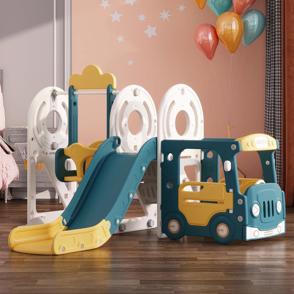 3-in-1 Design: Combines a swing, a slide, and a large bus-shaped playing space (with an open roof for easy entry/exit).