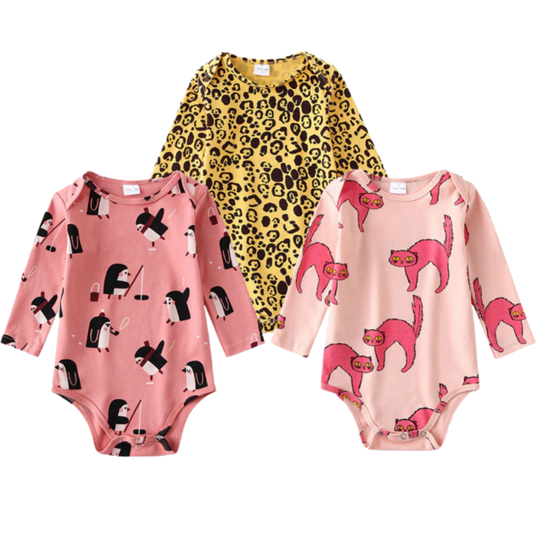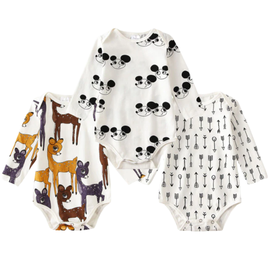 3 Pcs Pattern Print Bundled Long Sleeve Onesies
