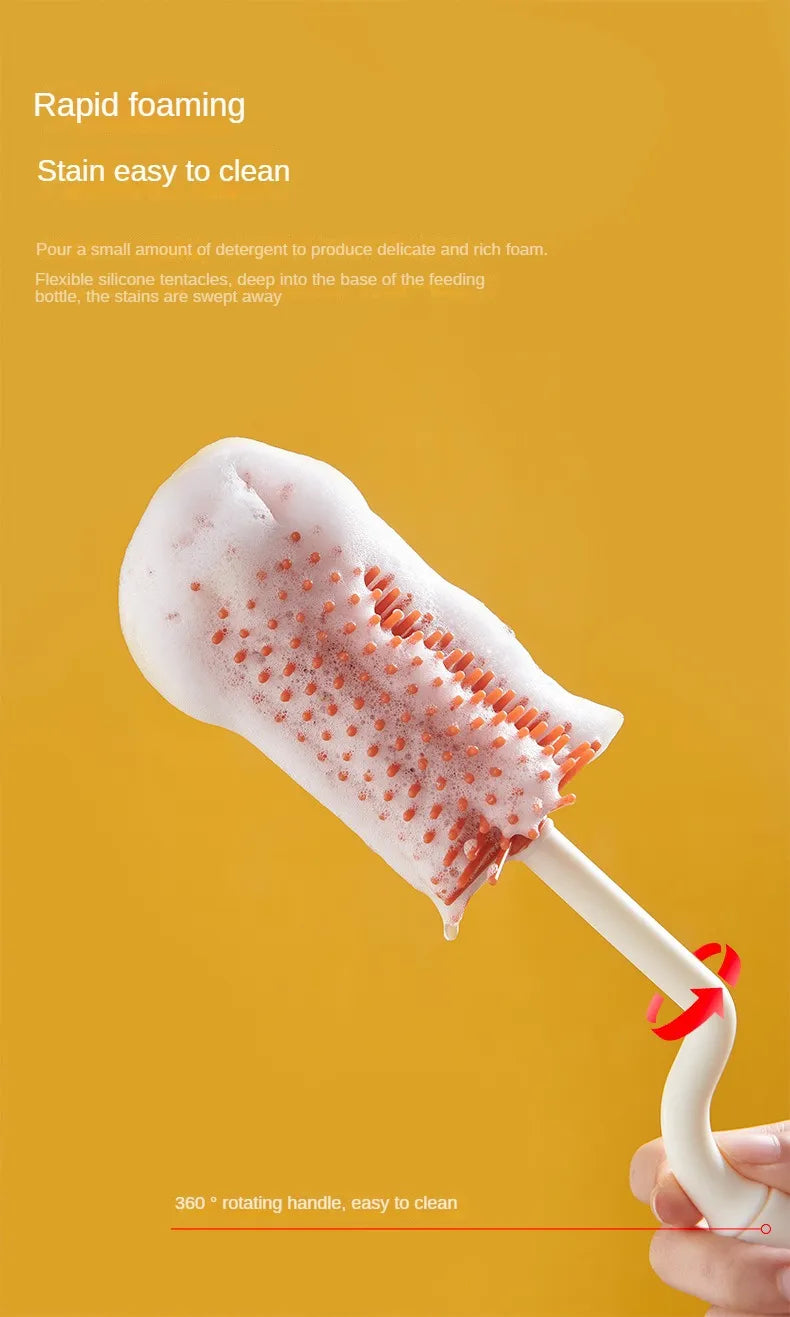 Embark on a journey of cleanliness and convenience with our revolutionary 360° Rotation Silicone Bottle Brush Set. This set is meticulously designed to redefine the way you clean your baby's bottles, ensuring a thorough and hygienic experience.