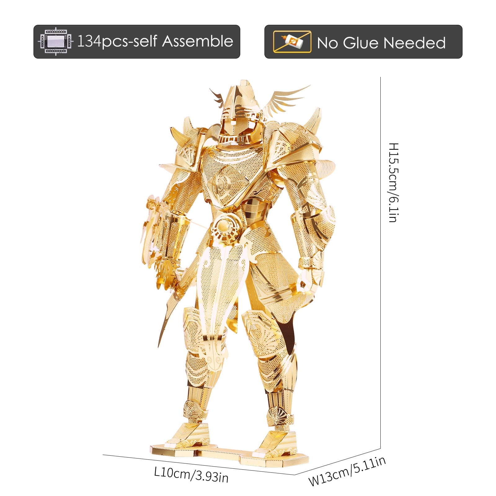 3D Assemble Metal Model The Knight Of Firmament simulates a gold-colored stainless steel bow-wielding knight armor with many fine details. You will surely enjoy this metal assembly model.