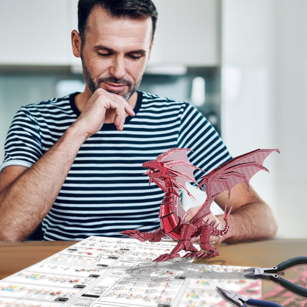 The 3D-assembled metal model Dragon Flame simulates the naughty Dragon that loves freedom and adventure. He is covered with thick scales all over his body and is equipped with sharp teeth, powerful limbs, and a strong dragon tail. At night, it likes to stand quietly on the edge of a cliff and look up at the starry sky.