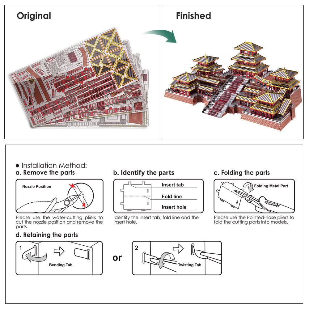 The Epang Palace Building 3D metal assembly model simulates a Chinese palace complex built during the reign of Qin Shi Huang, the first emperor of China and the founder of the Qin dynasty short.