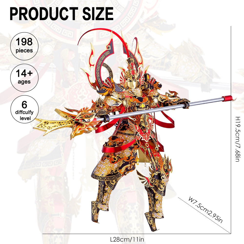 The Er-lang God 3D metal assembly model simulates a Chinese god with a third truth-seeing eye in the center of his forehead. Er-lang God may be a deified version of several semi-mythical folk heroes who helped regulate China’s torrential floods dating variously from the Qin, Sui, and Jin dynasties.