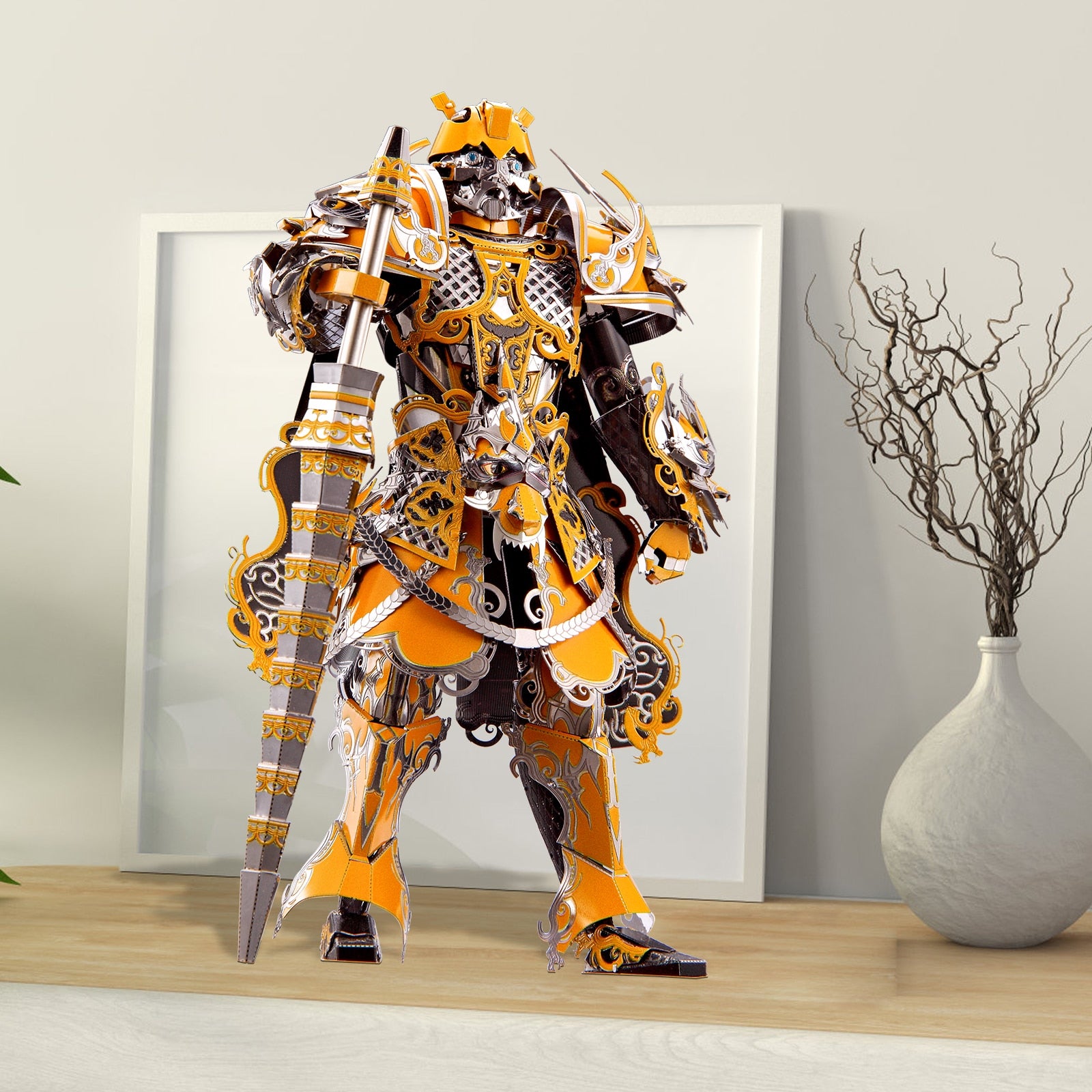 The 3D Assemble Metal Model of the God General Kim Cang King Kong simulates the god general guarding the mythical Southern Gate of China with multi-colored stainless steel, durable material.