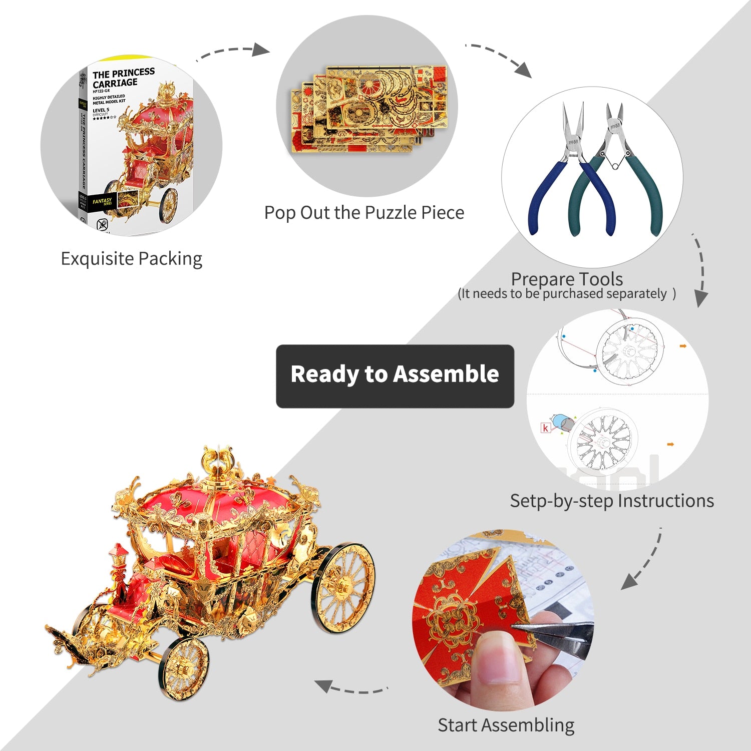 The Princess Carriage 3D Assemble Metal Model simulates the princess' carriage in fairy tales. Have a great time assembling this fun model.