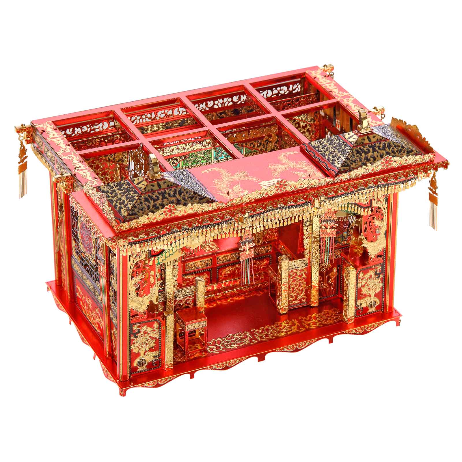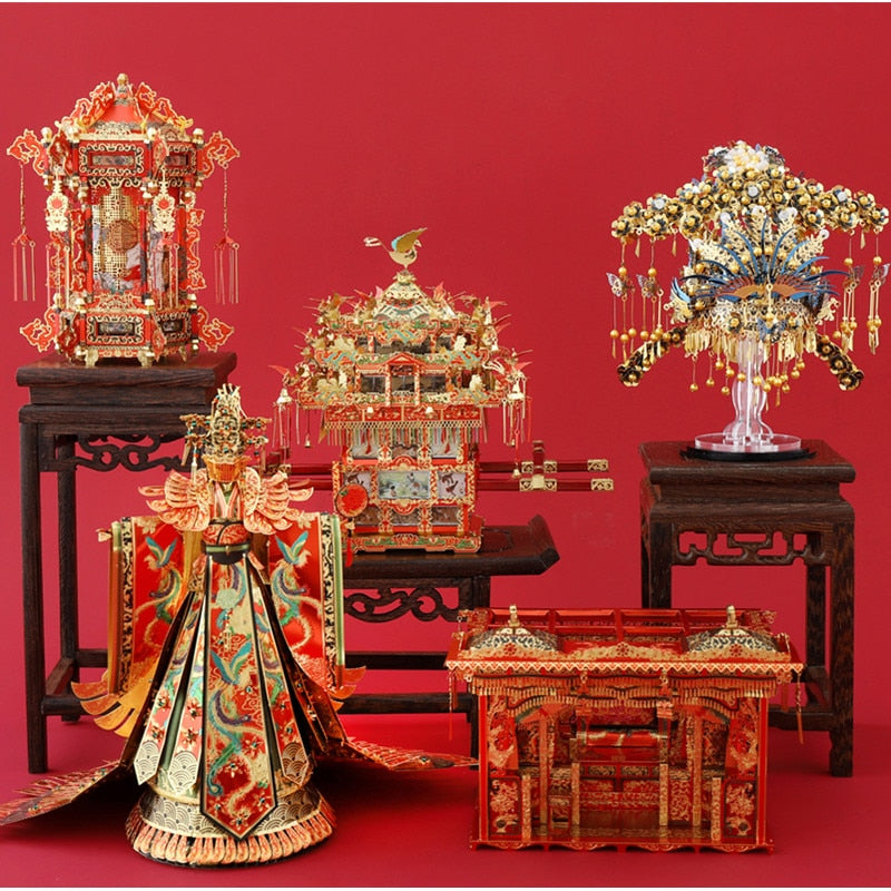3D metal assembly model flower palanquin, bridal gown, wedding bed, phoenix wreath, lantern. One of the indispensable items before the wedding day in the early period of the Republic of China.