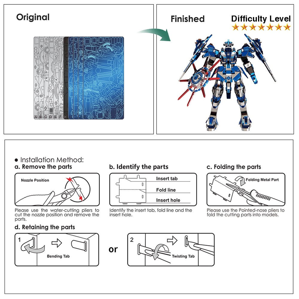 Blue Magnetic Rotation 3D Assembly Metal Model simulates a large stainless steel robot with many colors and sharp details. Try your hand at this assembly model. Good luck with the assembly.