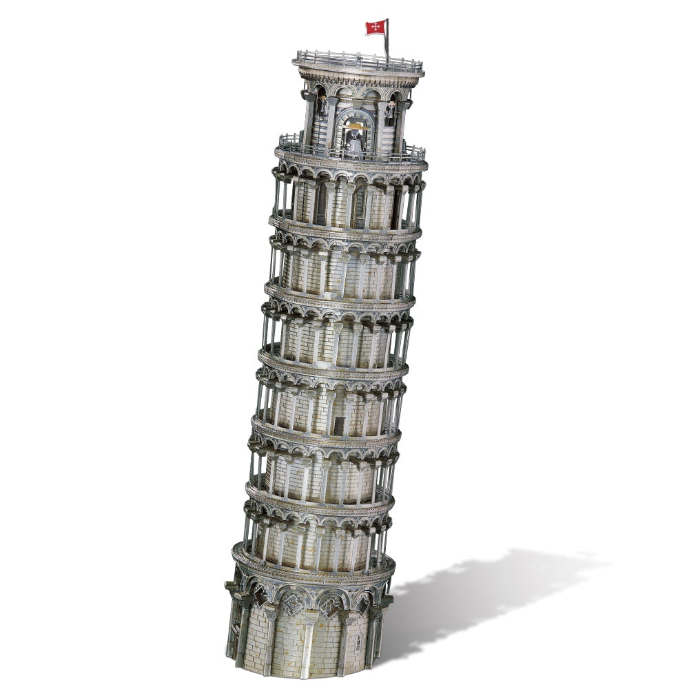 The Leaning Tower of Pisa is a bell tower in the city of Pisa (Italy) that started construction in 1173. The tower is 55.86 m high from the ground up to the low side and 56.70 m to the high side. From the bottom up there are 294 stairs. The tower wall is 4.09 m thick at the base of the tower, then gradually receded, only 2.48 m at the top. The total weight of the tower is about 14,500 tons. This 3D metal assembly model will take you to the famous Leaning Tower of Pisa.