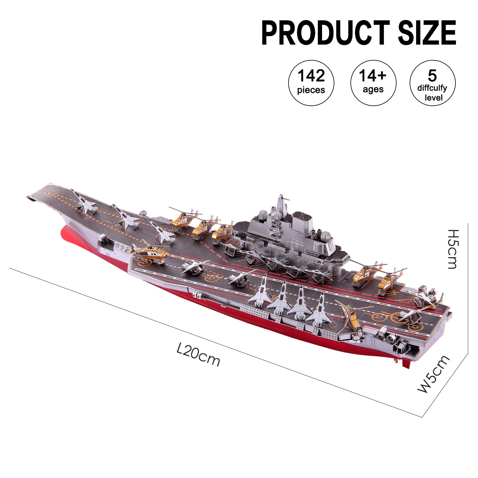 The Liaoning CV-16 3D metal assembly model simulates a Chinese Type 001 aircraft carrier. The first aircraft carrier commissioned into the People’s Liberation Army Navy Surface Force, she was originally classified as a training ship, intended to allow the Navy to experiment, train and gain familiarity with aircraft carrier operations.