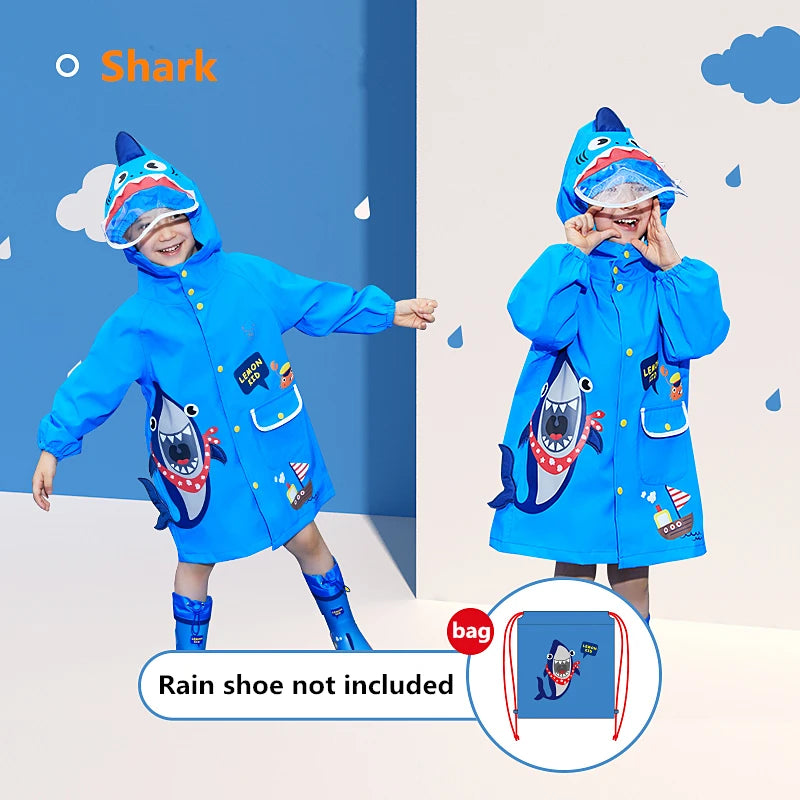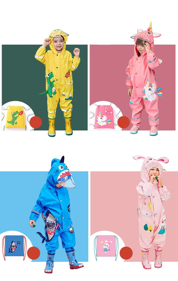 Adorable 3D Animal Designs: From the lovable rabbit and enchanting unicorn to the roaring dinosaur and adventurous shark, these raincoats bring imagination to life.