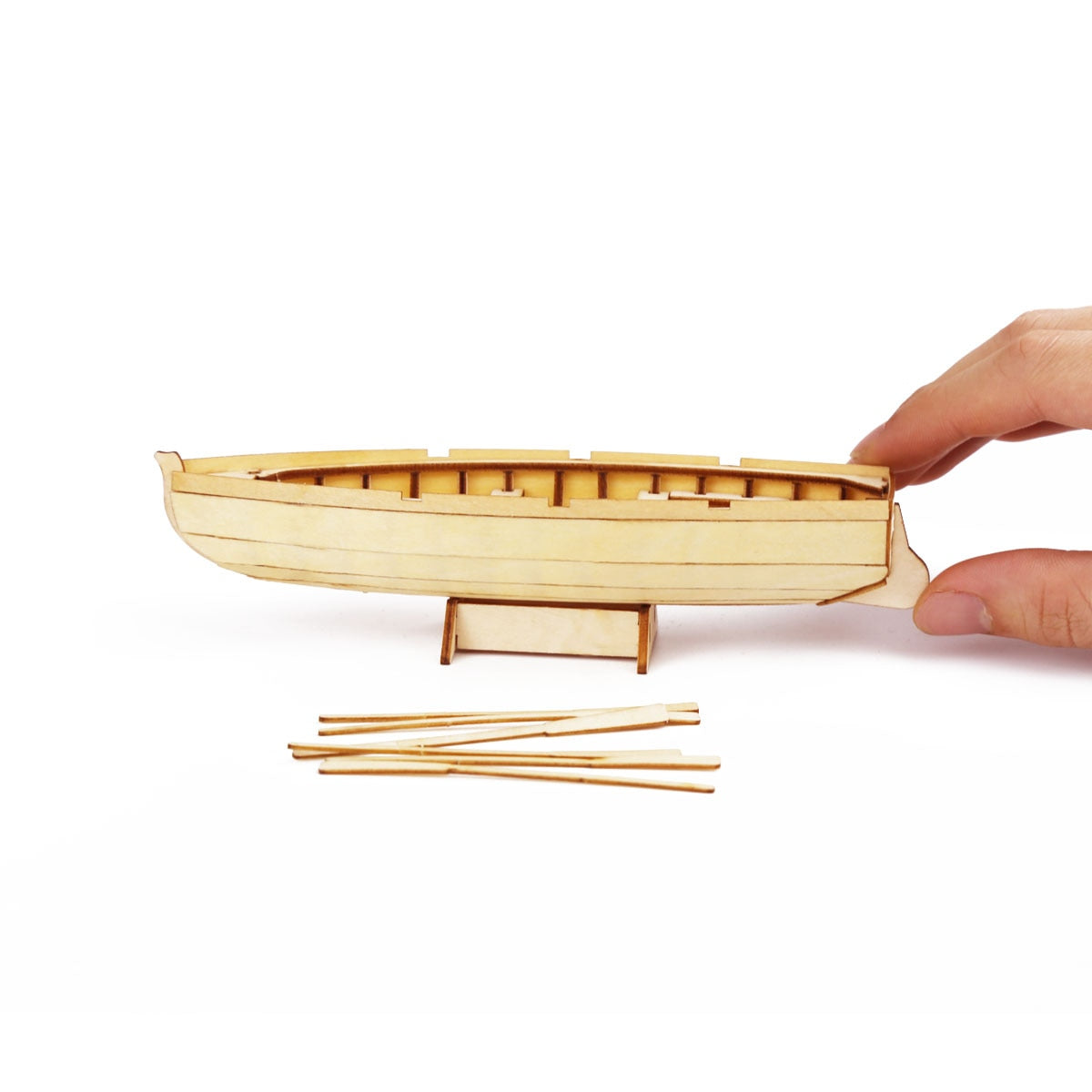 Everything you need for the assembly comes in the package. Depending on the specific model, rubber bands, fishing lines, or stickers will also be provided.