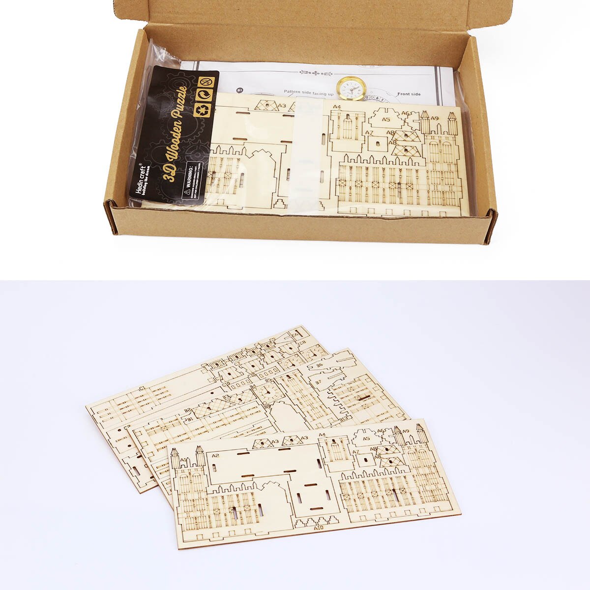 Clock Big Ben is a popular DIY architectural 3D wooden puzzle with light. Assemble it with your own hands, turn on the lights, and enjoy the splendid and iconic British architecture in night mode.