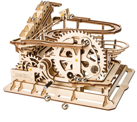 Marble Night City is based on great human engineering. This marble-run product combines the beauty of science and machines, involving so many small gadgets. It is a self-assembly 3D wooden puzzle. Build the set and crank the handle. Watch marbles run crazy down the slopes and twisting turns.