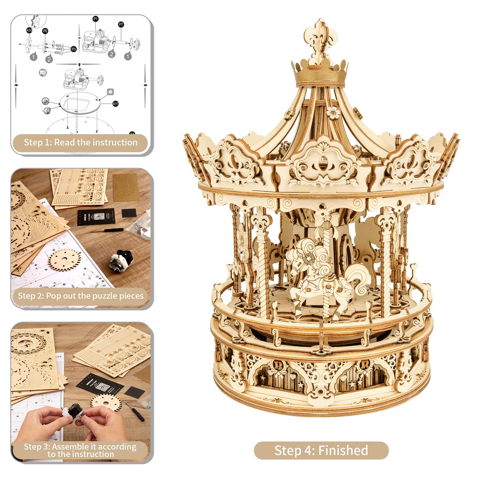 3D Wooden Puzzle | Romantic Carousel Mechanical Music Box | Gift for Your Children