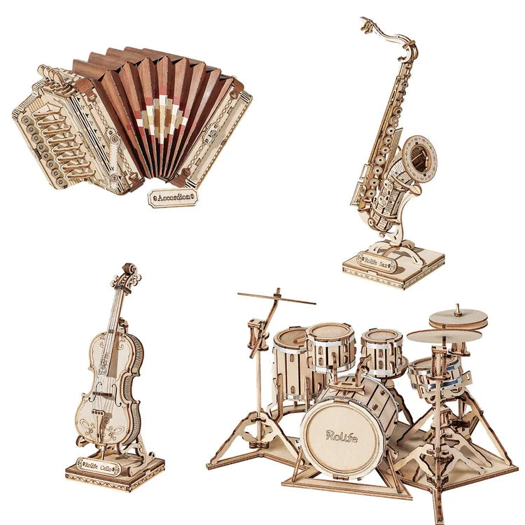 3D Wooden Puzzle | Saxophone Drum Kit Accordion Cello | Gift for Your Children and Adults
