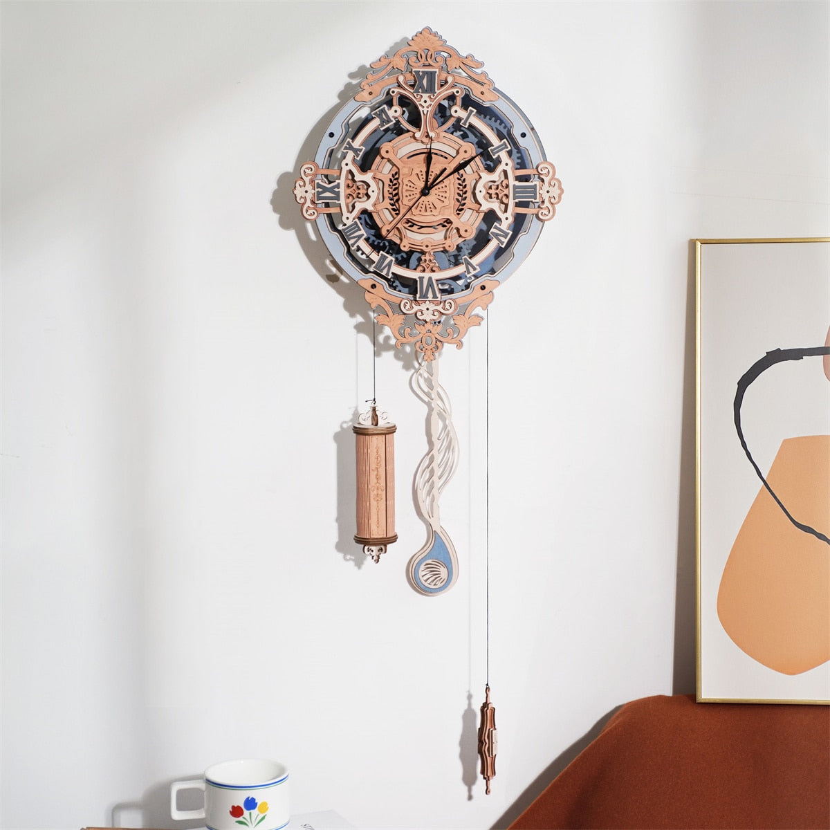 - This creative wooden wall clock is 100% gear-driven, which tells you the accurate time. With a horizontal adjustment device, gear drive, and gravity pendulum design, this unique clock will be great in functionality as well as aesthetics.