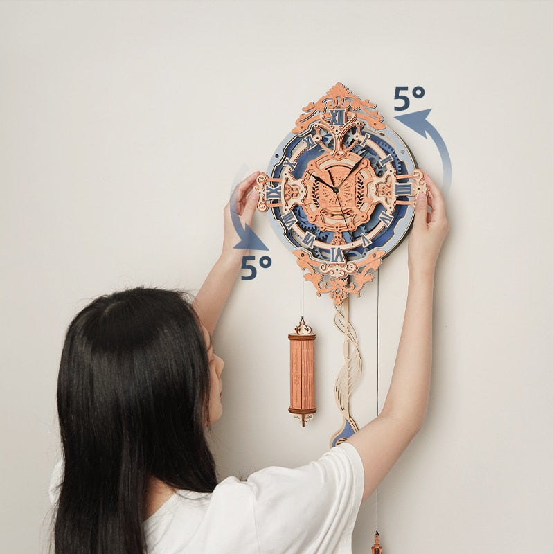 This self-assembly wall clock 3D wooden puzzle is a perfect combination of machine and romance. It is a real clock that tells you the accurate time after finishing. Feel the ultimate romance with this exquisite wooden mechanical gear model.