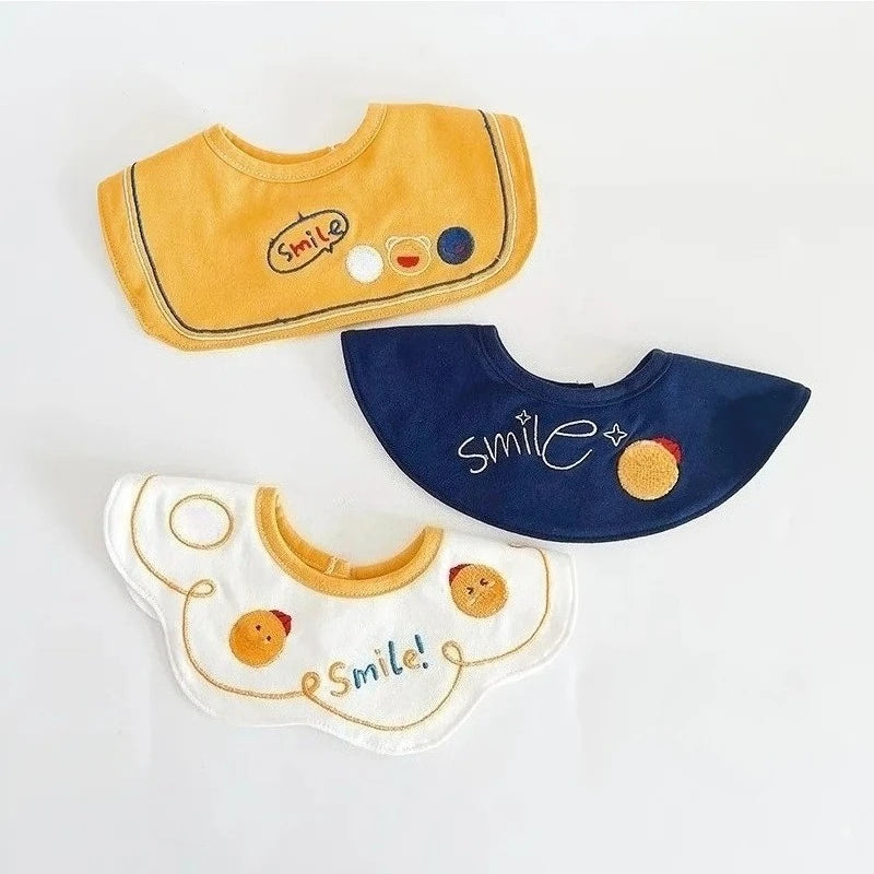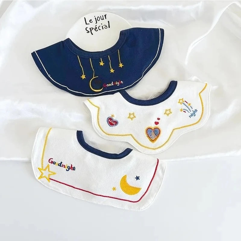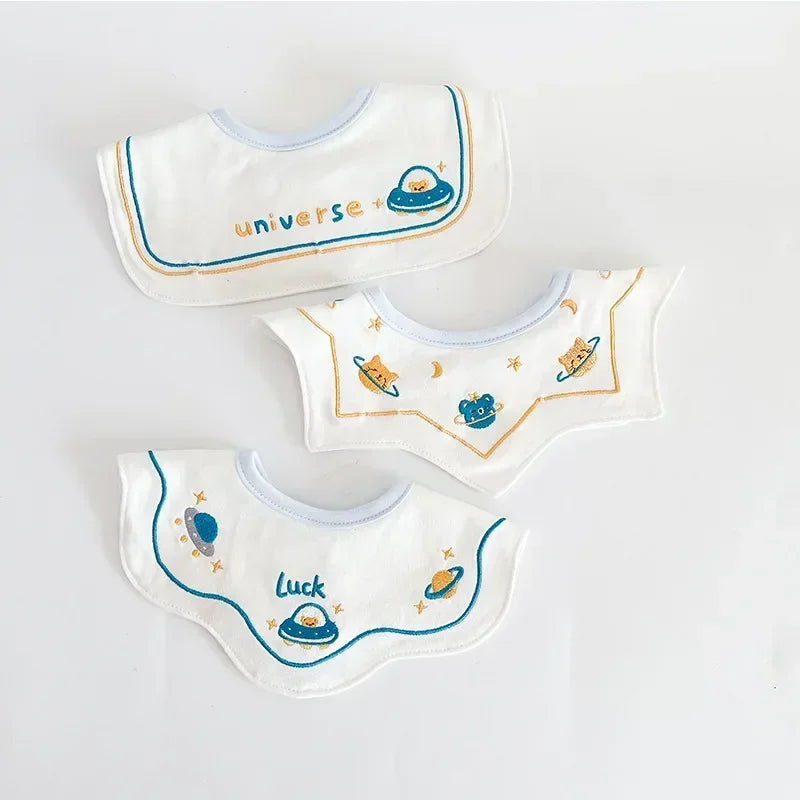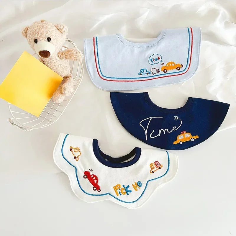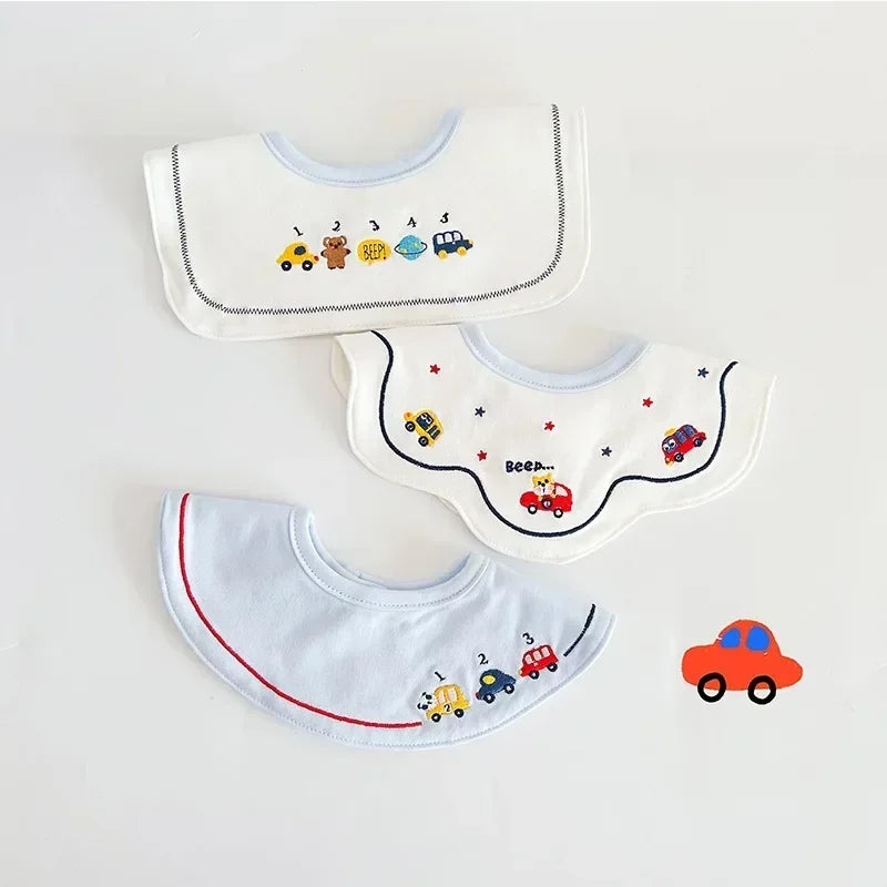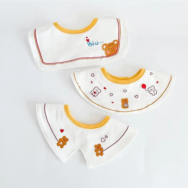 3PCS Korean Cotton Baby Bib Set – Soft Embroidered Waterproof Saliva Towels for Boys and Girls, Flower Collar Design