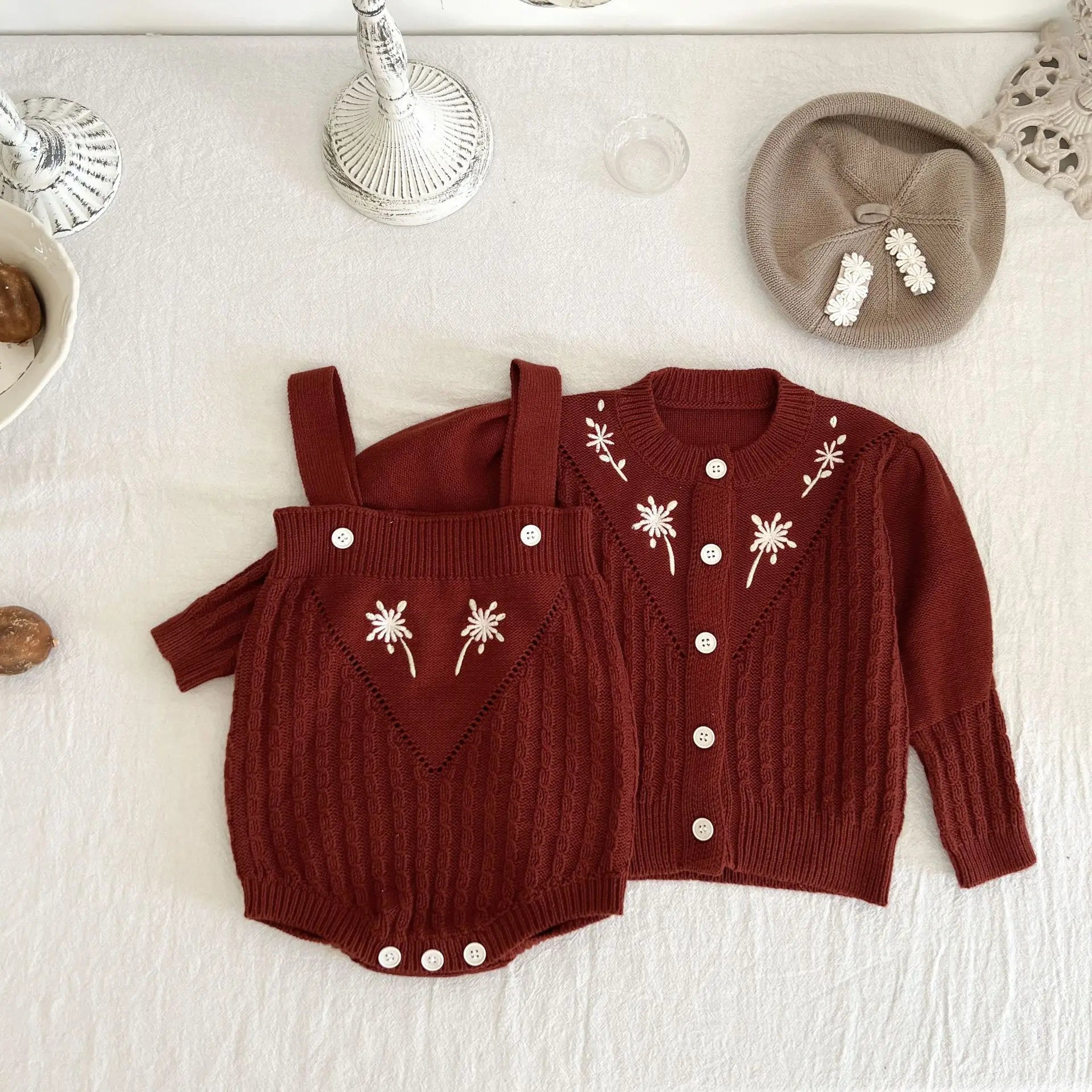 This cozy and warm Autumn Fashion Embroidery Flower Set for Baby is made with light and soft knitted fabric that are comfortable to wear for babies. With a cute flower pattern, this baby romper is picture-perfect daily wear for your little one this season!
