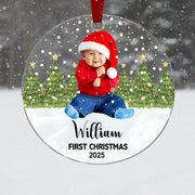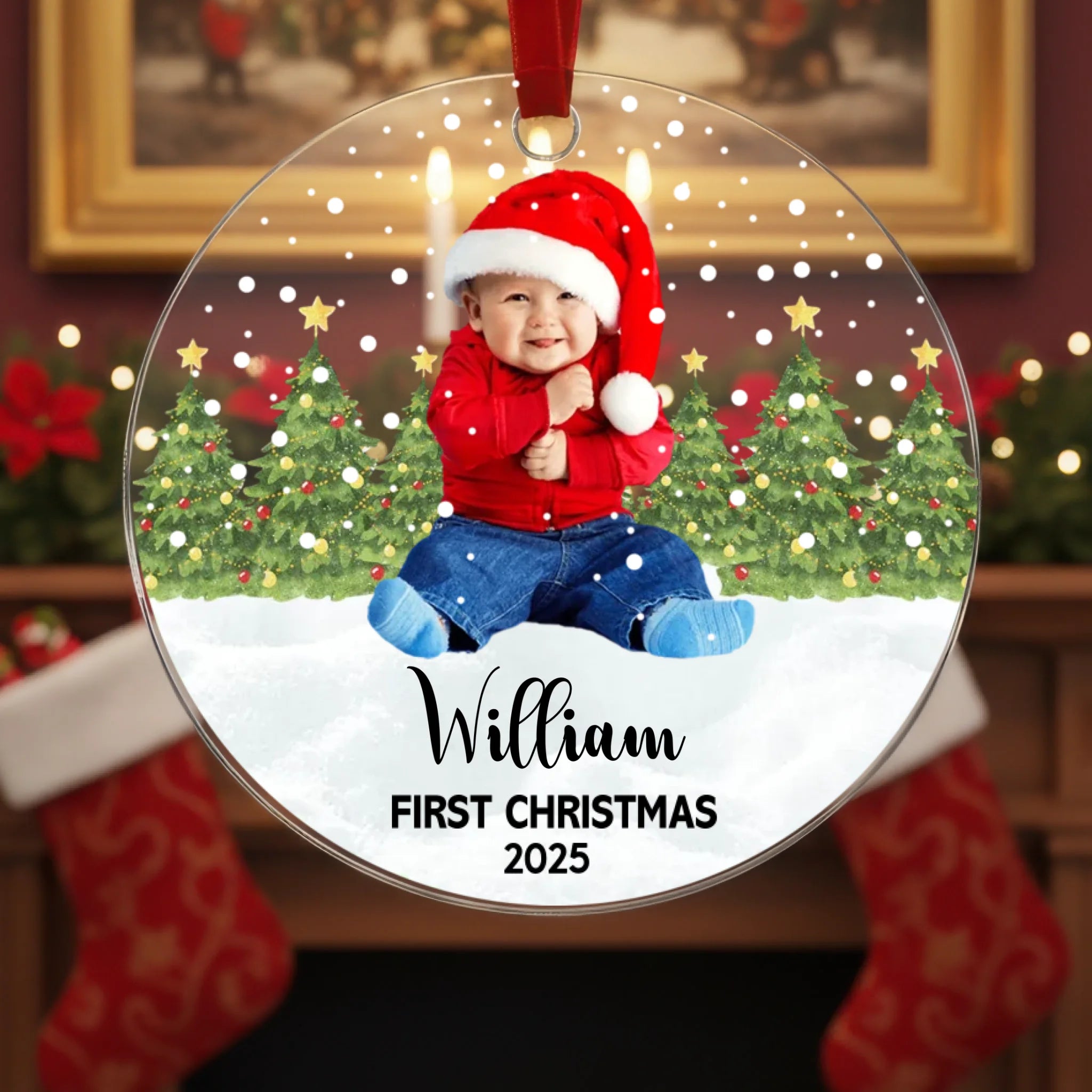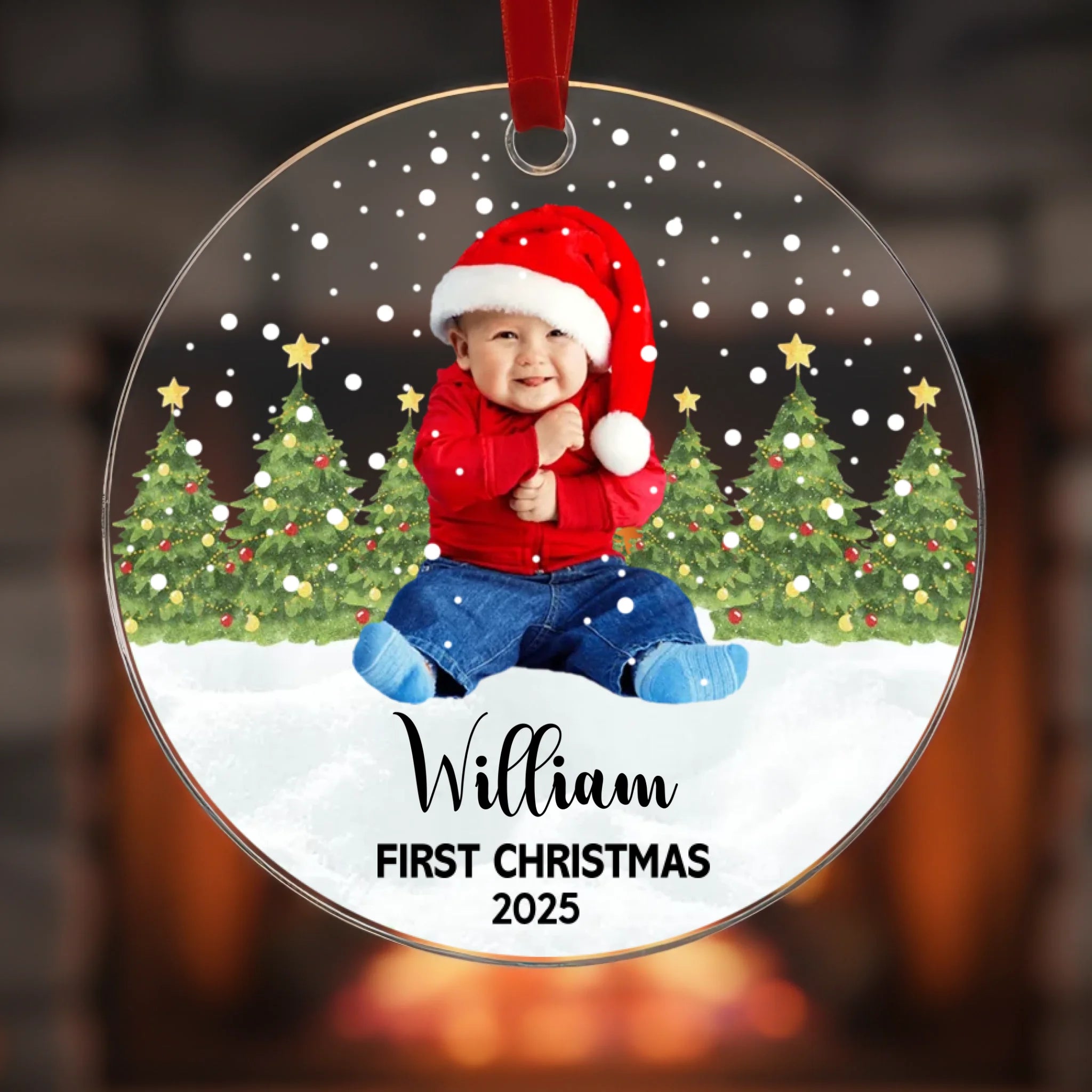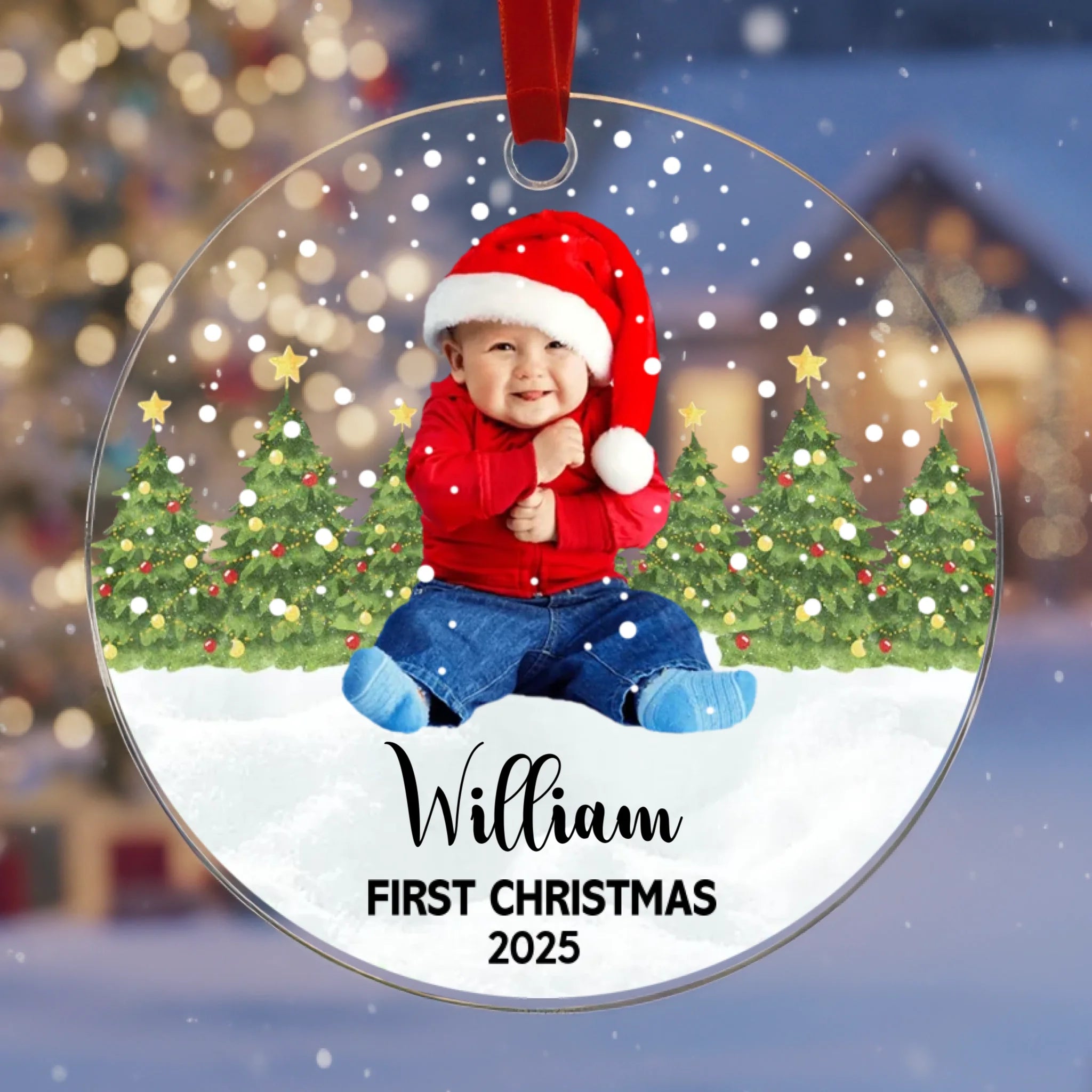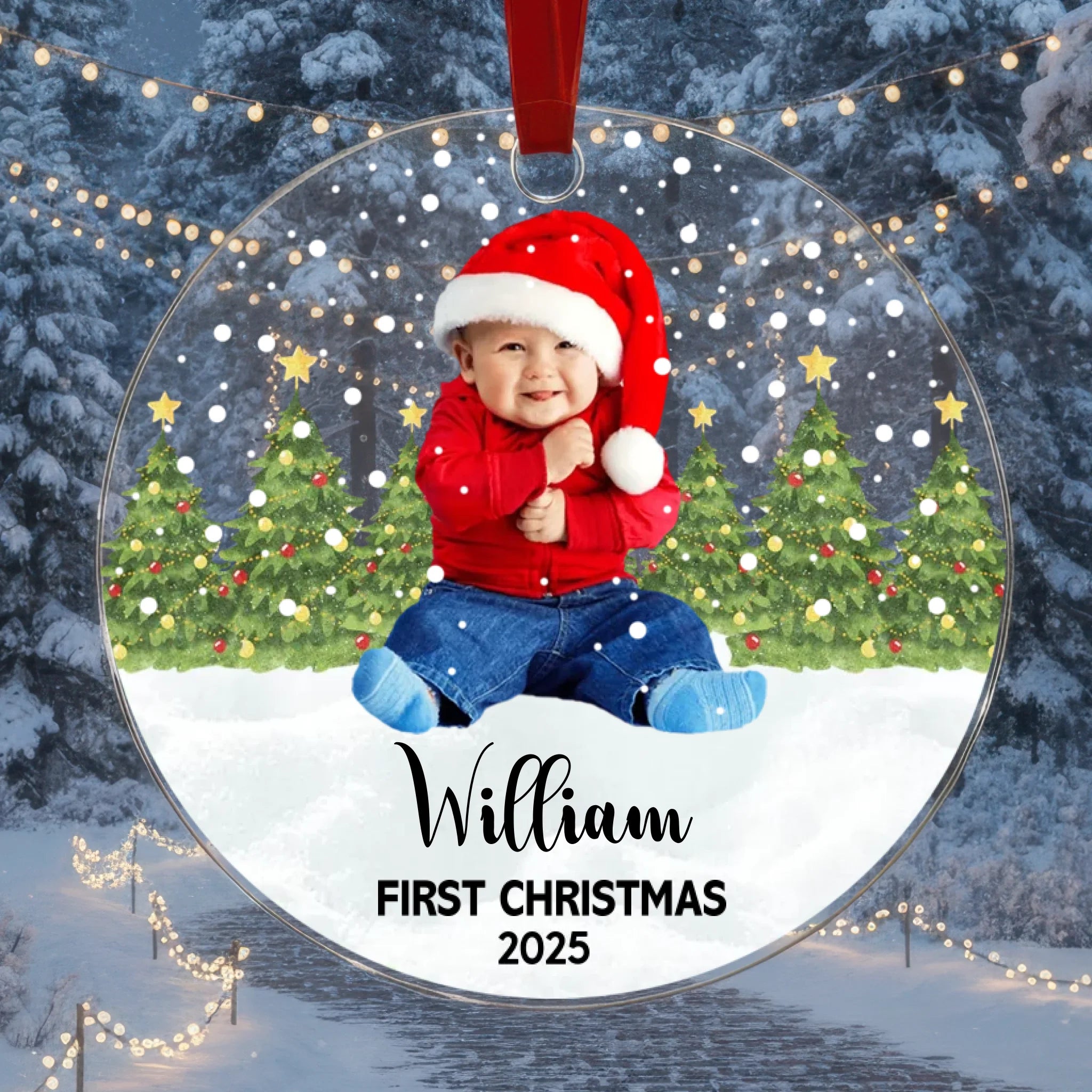 Personalized “Baby’s First Christmas” Circle Acrylic Ornament – Custom Photo, Name & Text Color | Newborn Keepsake Gift for Holiday Tree & Christmas Décor