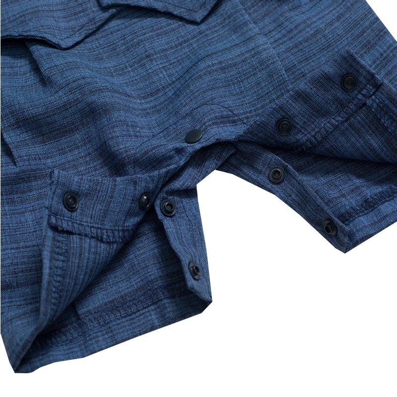 Designed with attention to detail, the turn-down collar adds a touch of sophistication to the ensemble. The single-breasted closure and short sleeves make it easy to dress your baby while maintaining a stylish look. The material composition, predominantly cotton, guarantees breathability and gentle care for your infant's delicate skin.