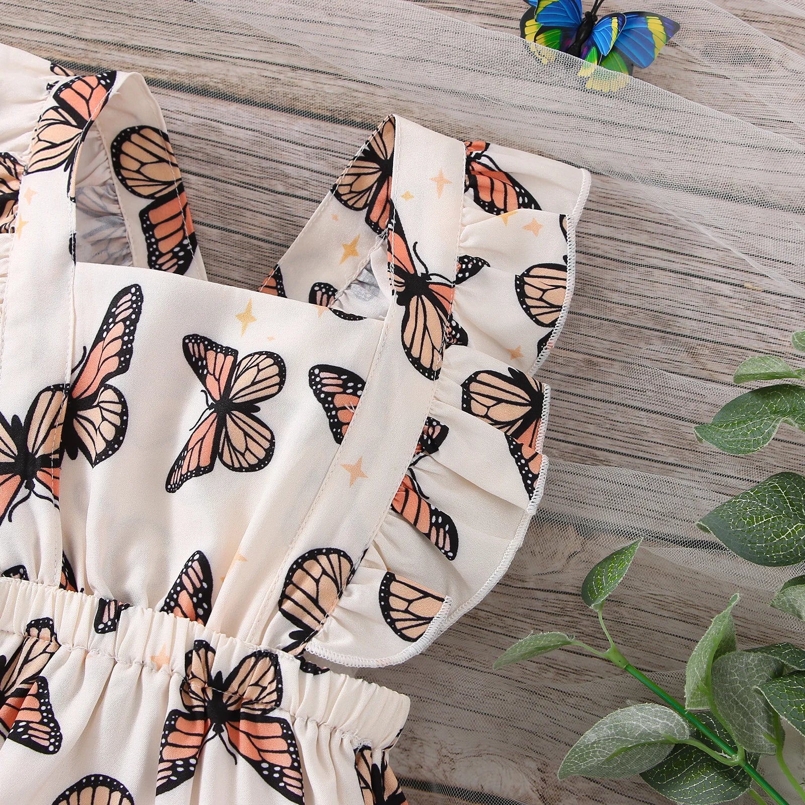 Complete Your Baby's Ensemble: Our Baby Butterfly Print Ruffle Bodysuit is not just clothing; it's a celebration of comfort and adorable fashion. Order now to dress your little one in a delightful outfit.