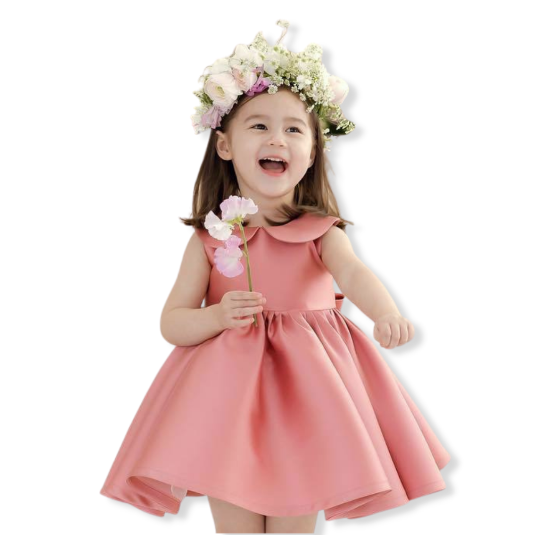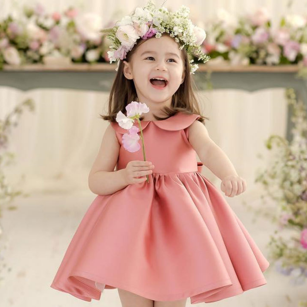 This Baby Collar Sleeveless Fashion Elegant Silk Dress is a beautiful dress for girls. It looks very delicate and elegant. This beautiful dress is specially designed for girls and it is made of high-quality fabric which has excellent wear-resistance, softness, comfortable feel, no fading, and it comes with a zippered closure on the back.