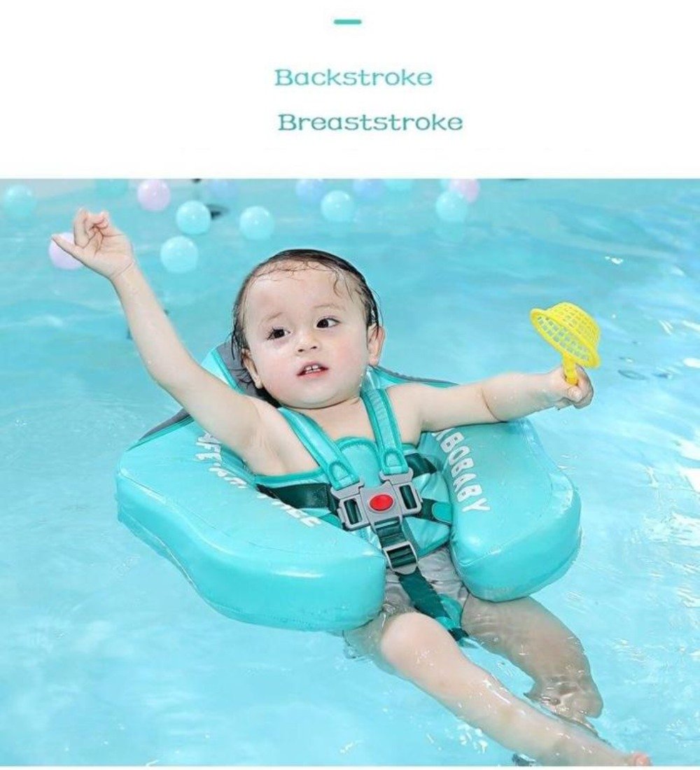2 swim ways optional with different buckle methods: backstroke and breaststroke. Backstroke for 3-12months baby while breaststroke for 3- 24months baby.