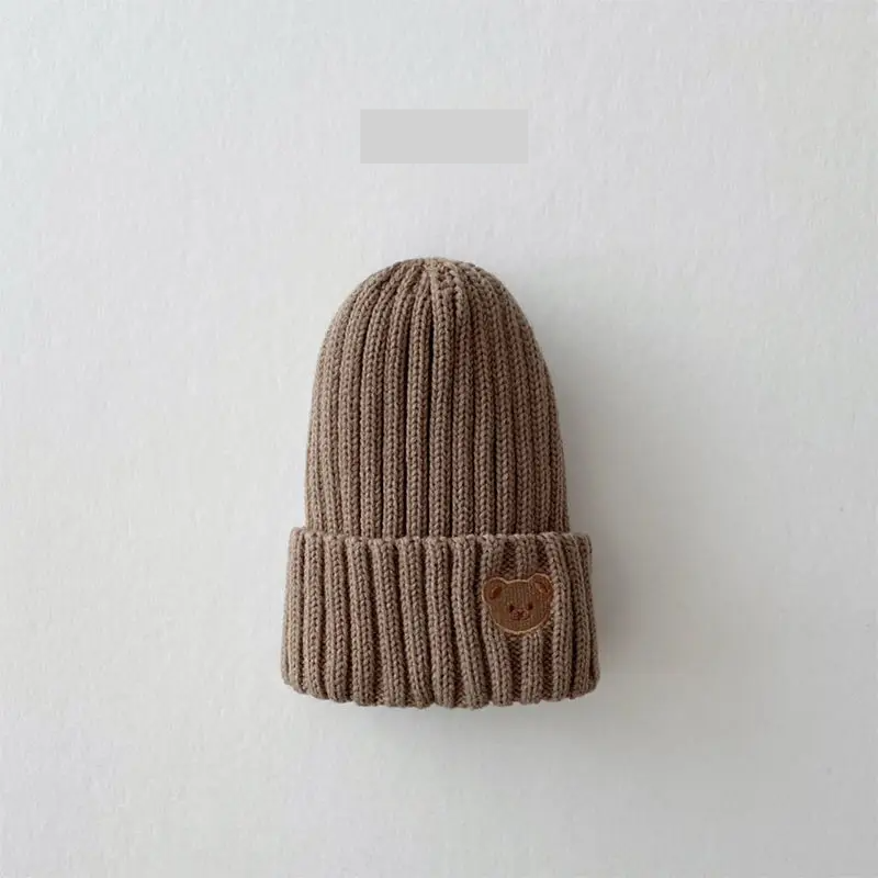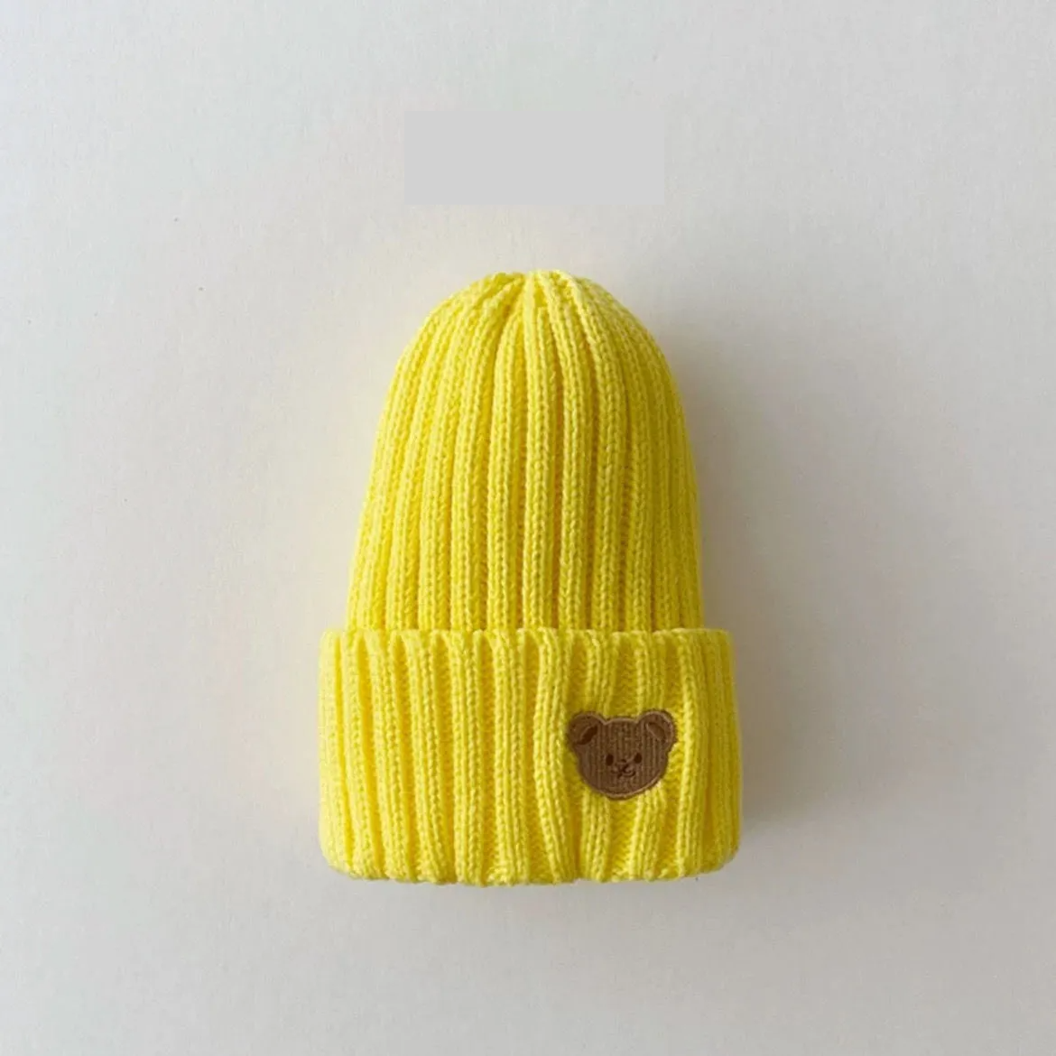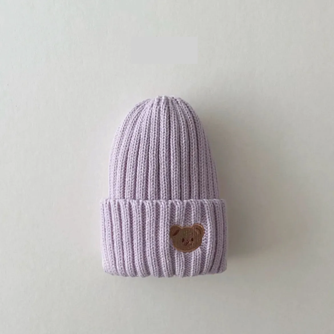 Bear Embroidery Knitted Baby Beanies - Cute Cartoon Hats