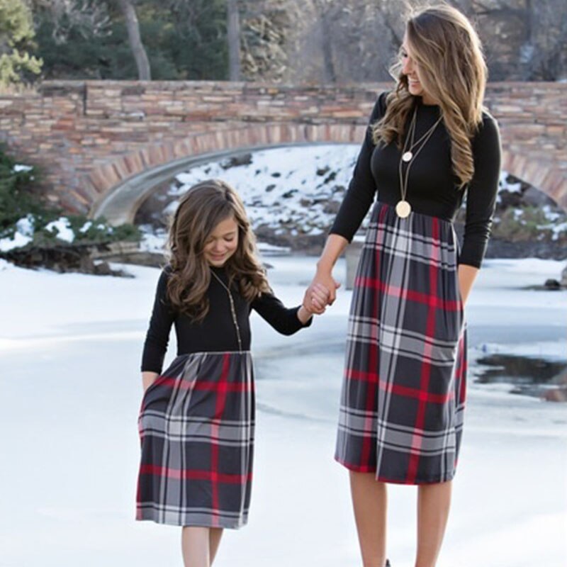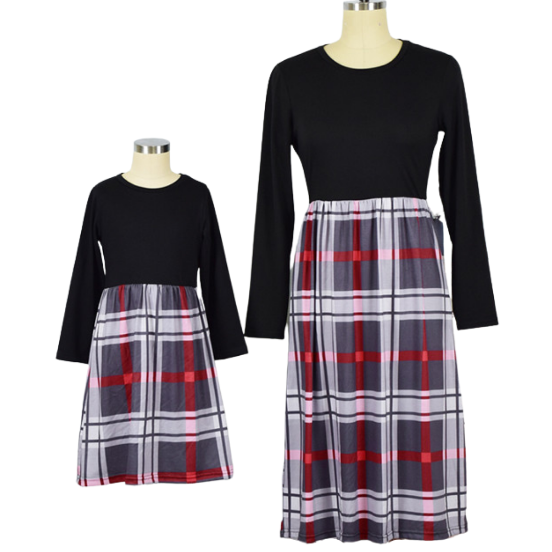 Black Top and Plaid Bottom Mommy and Me Matching Dress