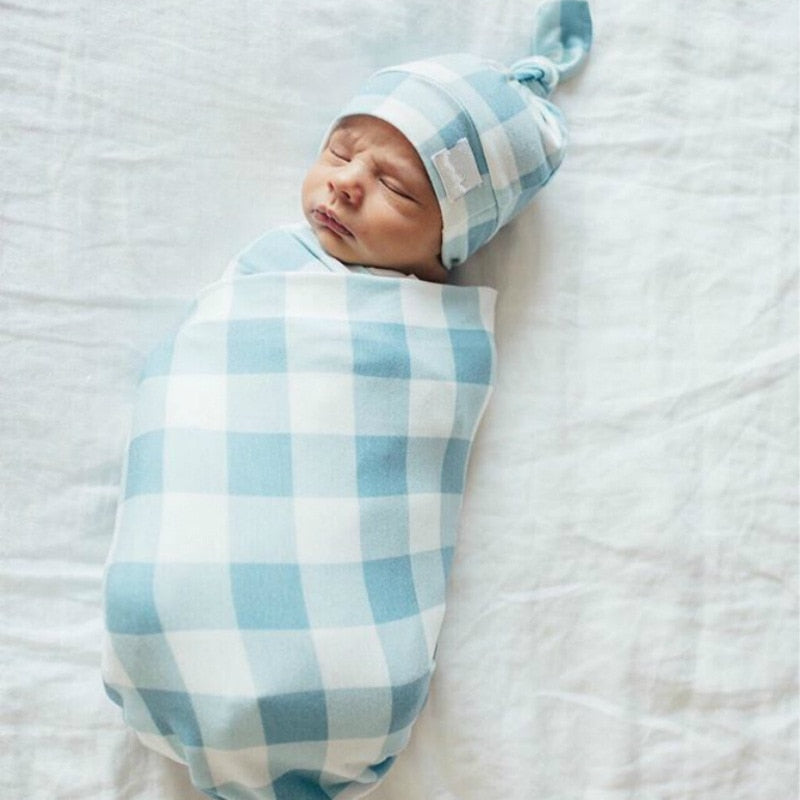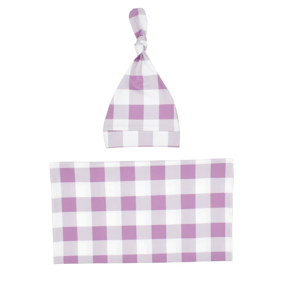 Blanket Newborn Plaid And Baby Hat Set